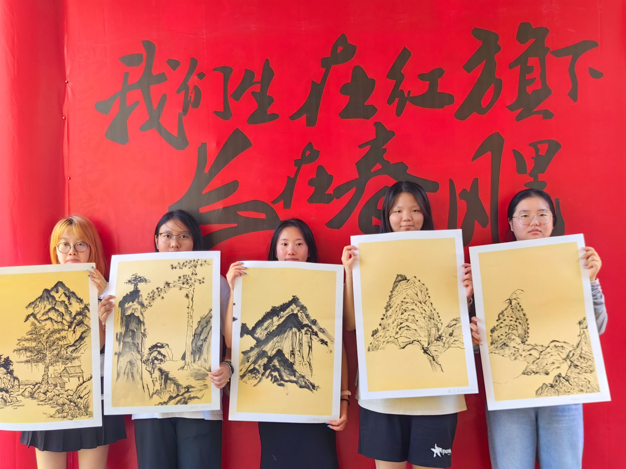 这些作品不仅体现了同学们对书画艺术的热爱,更传递出青年一代对祖国的深情与自豪。同学们以水墨渲染山河气势,以工笔细描人文景观,一幅幅作品将现代审美与传统笔墨相结合,展现出创新表达的探索精神。