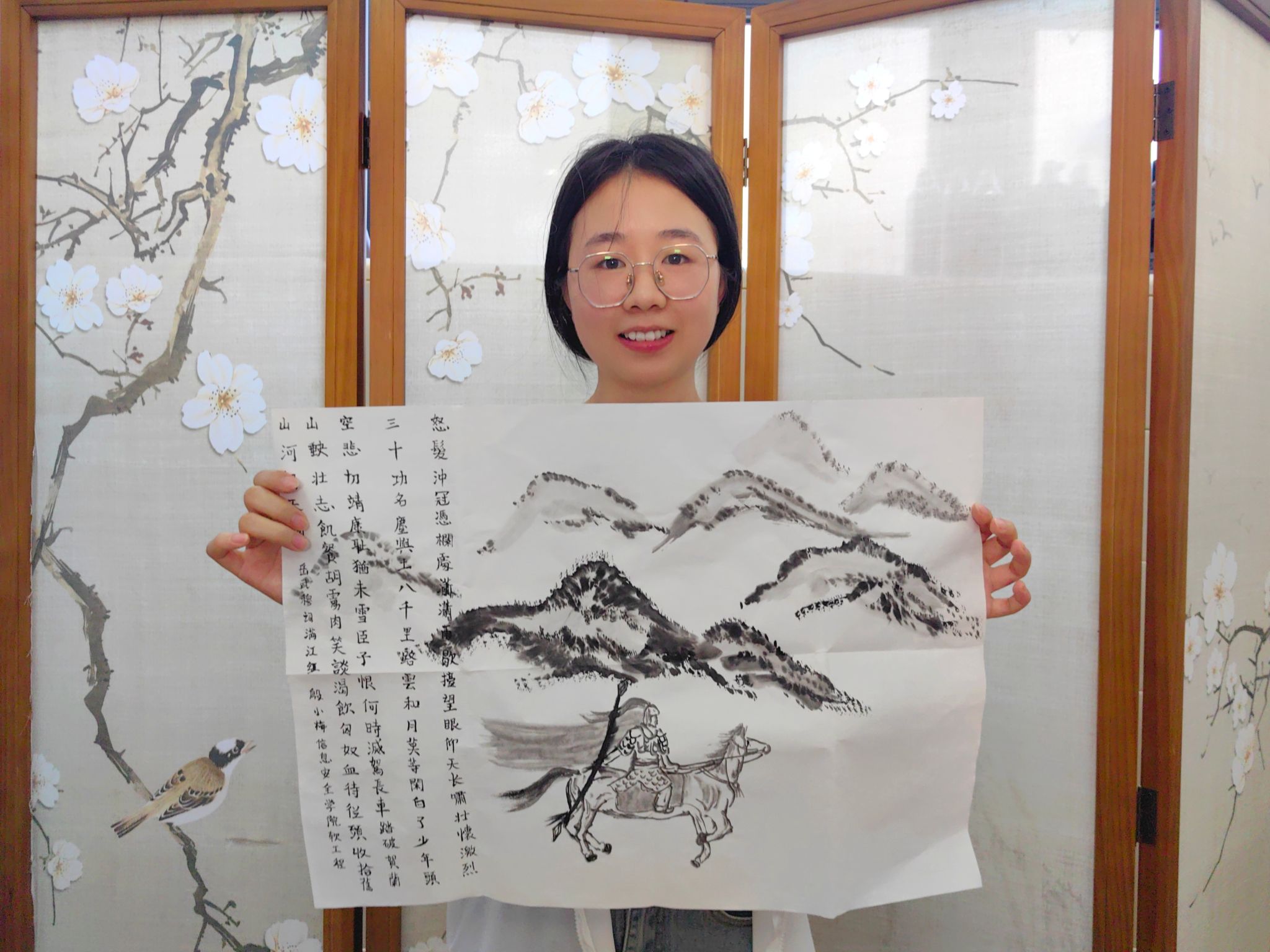 活动期间,同学们积极响应、热情参与,围绕祖国山川江河、人文景观展开创作。作品形式丰富多样,涵盖国画、水彩、书法等多种体裁。有的同学以稚嫩却真挚的笔触,勾勒出心中对祖国山河的向往;有的同学则展现出扎实的绘画功底,以细腻的笔墨描绘出长城巍峨、江南水乡等壮美景色,将锦绣中国的自然风貌与人文精神融于尺幅之间;还有的同学提交了书法作品,以楷、行、隶等多种书体书写经典诗句,展现汉字之美与传统文化的深厚底蕴。