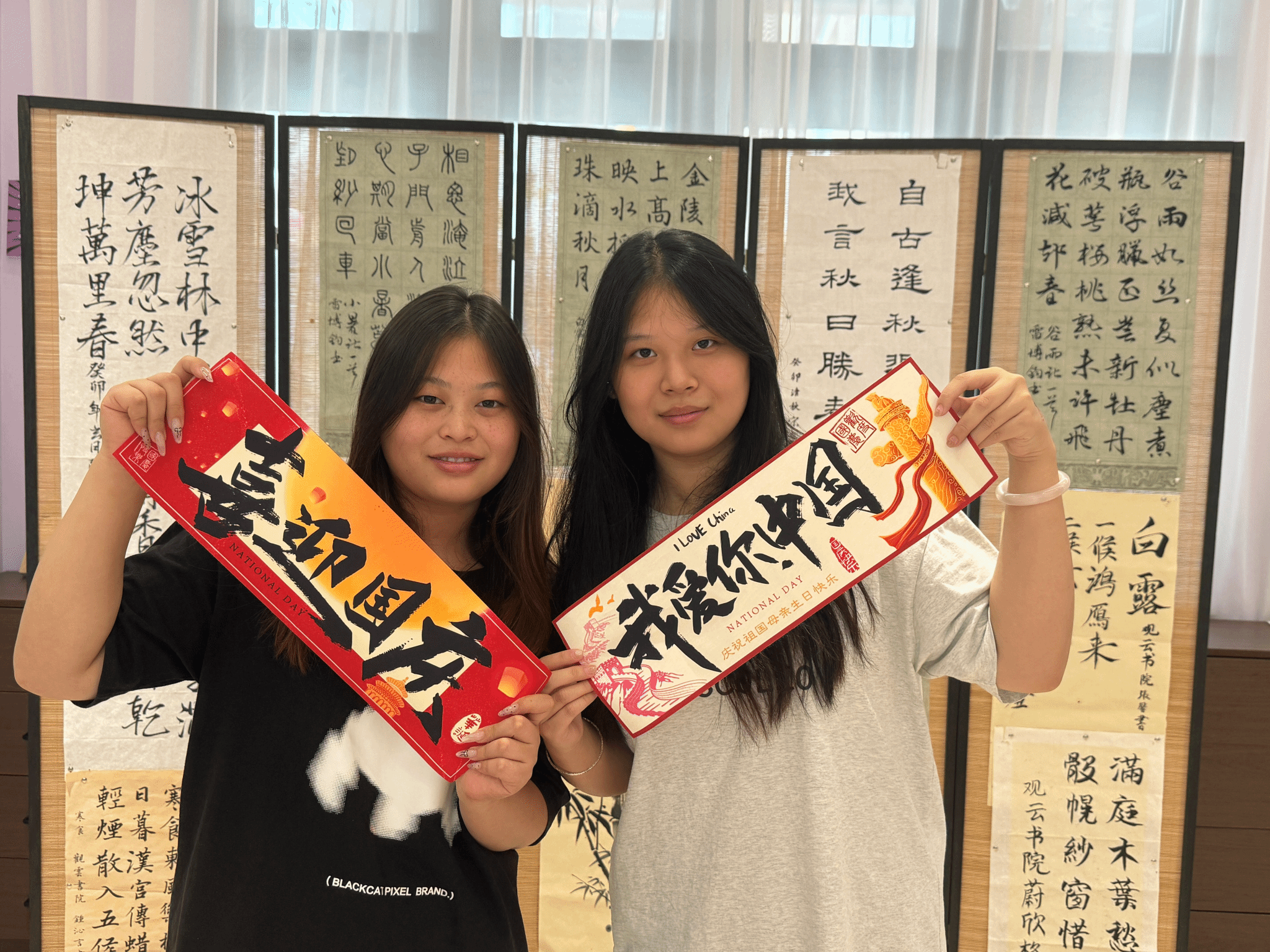 国庆佳节,同学们脸上贴着鲜艳的小红旗,洋溢着自豪与喜悦,在书院中拍下了一张张充满节日氛围的庆国庆写真,展现青春风采与爱国情怀。