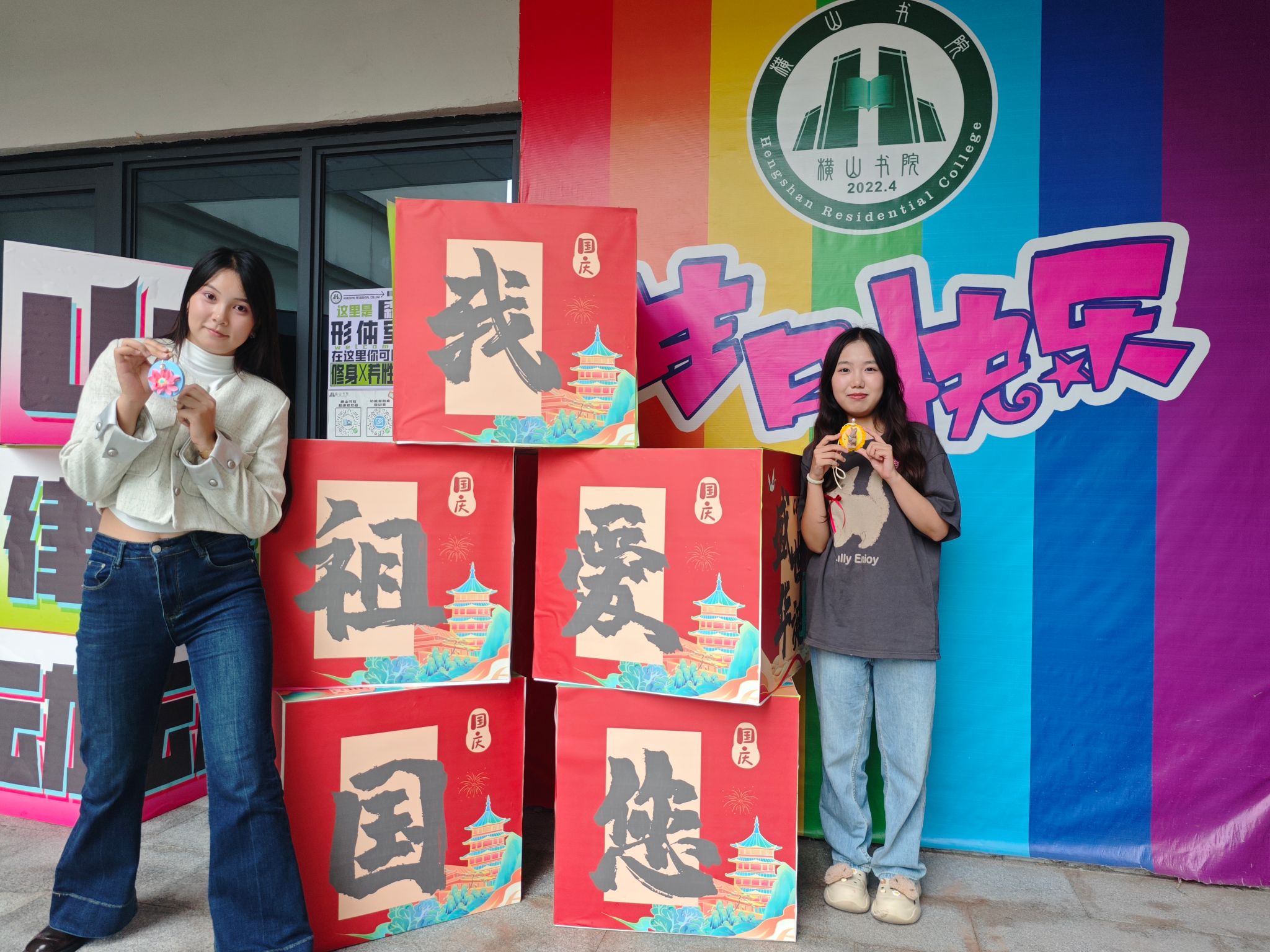 为营造浓厚书院家园氛围,增进书院师生情感交流,横山书院以“双节同庆・共品家味”为主题,携三重心意伴留校学子共赴佳节。其中,书院于寝室楼前巧设国庆主题打卡点,鲜艳国潮元素缀满角落,引得学子驻足合影,用镜头定格欢喜,让节日喜悦在分享中流转;更邀高年级学子执笔彩绘,在石膏挂牌上勾勒中秋图景、书写暖心寄语,手作“团圆祝福牌”赠予新生,让同辈温情悄然传递;还备下象征圆满的月饼,组织师生围坐共品,让书院学子虽未归乡,却在香甜滋味与欢声笑语中,触摸到“家”的暖意。横山书院以“双节同庆·共品家味”系列活动,把国庆的自豪、中秋的团圆和家的温暖一并打包,送进每一位留校学子的心里。