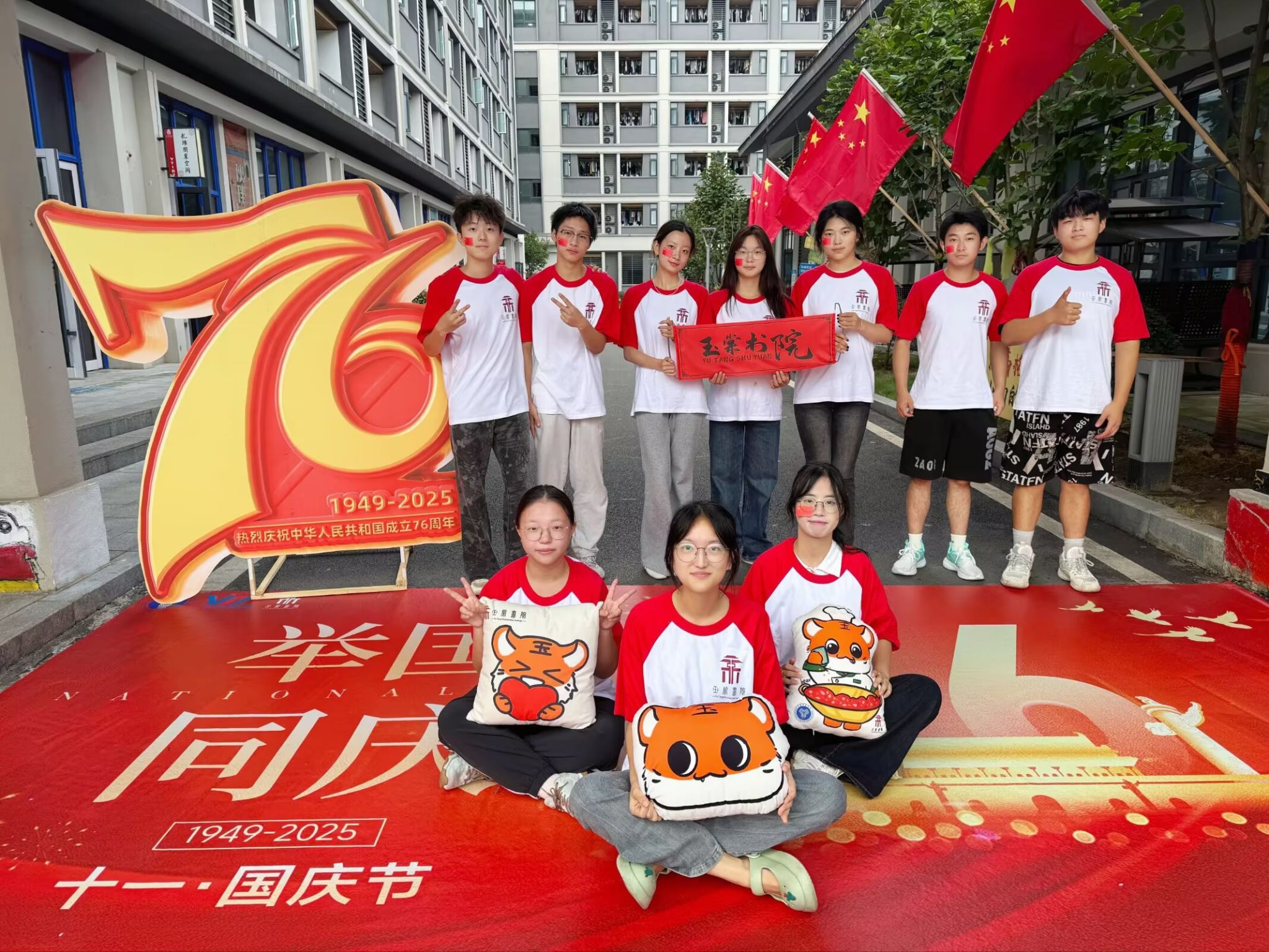 课间,同学们纷纷在国庆主题喷绘前打卡。书院准备的多样造型贴纸,更添节日趣味。满院“中国红”在蓝天白云与城市建筑的映衬下,绘就壮丽画卷,既洋溢着喜庆氛围,也彰显着青春活力。同学们从中汲取力量,在实践中践行初心,以青春姿态为祖国庆生,焕发时代光彩。