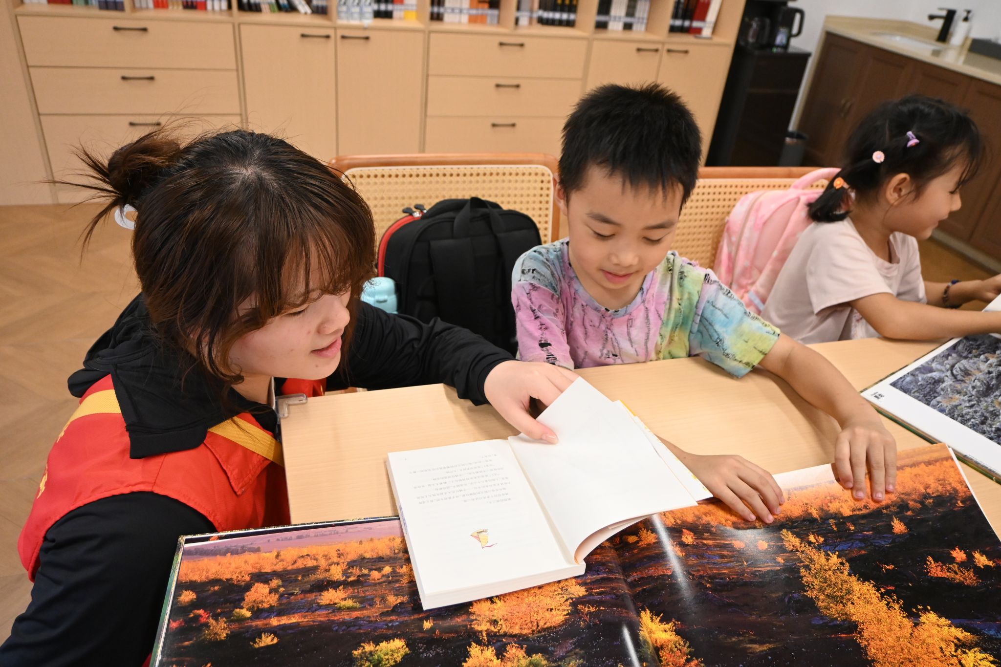 东溪书院内书香氤氲、笑语盈盈。志愿者们以“文化陪伴”为主线,通过绘本共读与游戏互动,在孩子们心中播撒文化种子。精心设计的绘本课堂上,《昆虫记》蕴含的科学精神与《东溪传说》承载的乡土情怀相得益彰,生动图景悄然开启孩子们的认知之门;随后的“击鼓传花”环节,诗词童谣与故事讲述巧妙融合,让传统文化在欢乐氛围中自然传承。现场,一位原本羞怯的小男孩在志愿者的温柔鼓励下,勇敢站上前来展示自我,瞬间收获满堂掌声。这幕场景不仅见证了孩子的成长蜕变,更彰显了志愿服务以文化人、以情动人的育人价值——当文化的种子遇见心灵的微光,便绽放出最美的教育之花。