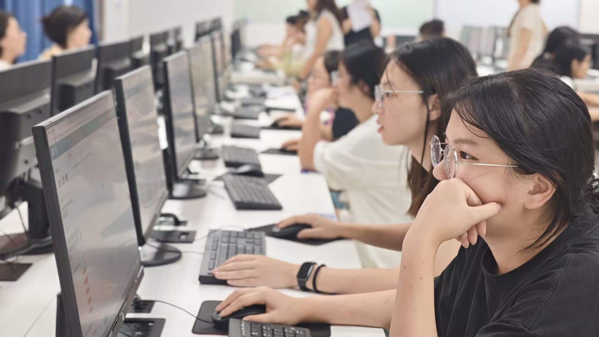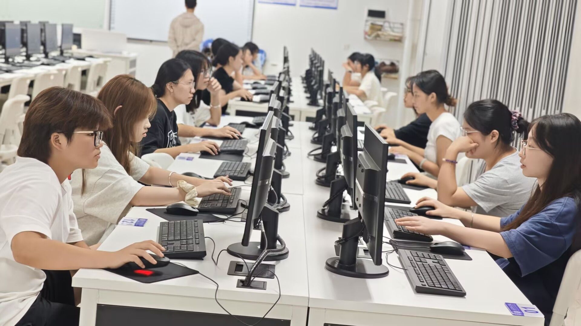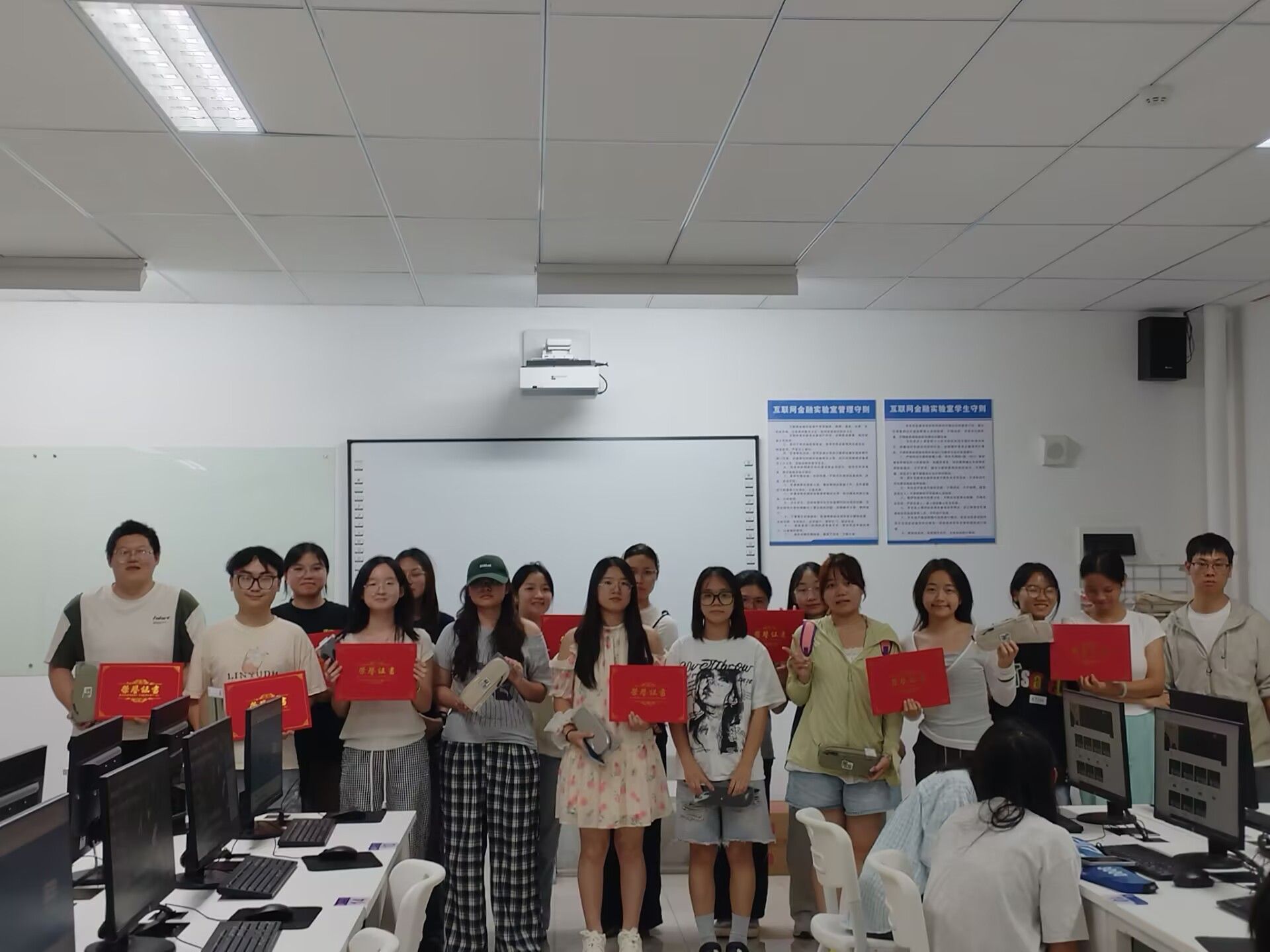 比赛伊始,应用组与技术组参赛选手在贤者楼阶梯处合影。随后,赛事分别在322、323(应用组)与304、306机房(技术组)同步进行。现场由数字经济教研室教师监考,工作室成员协助维护秩序、提供服务,整场赛事严谨有序、氛围热烈。选手们在区块链核心技术与实际应用两个赛道中各展所长,展现出扎实的专业积累与创新意识。