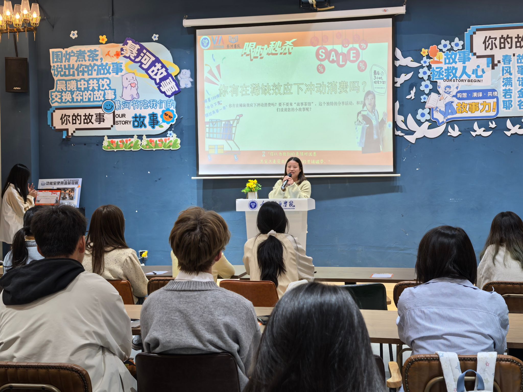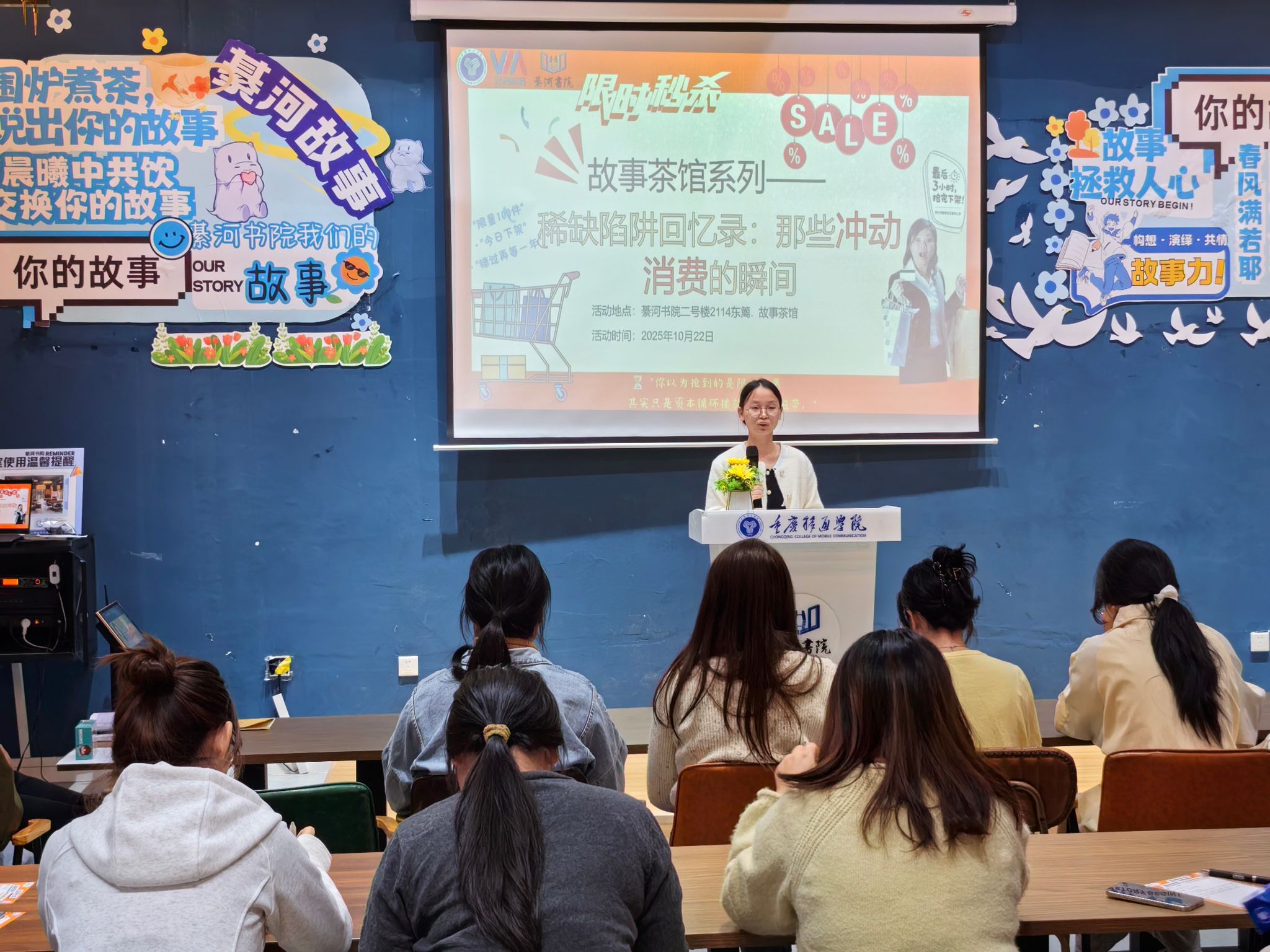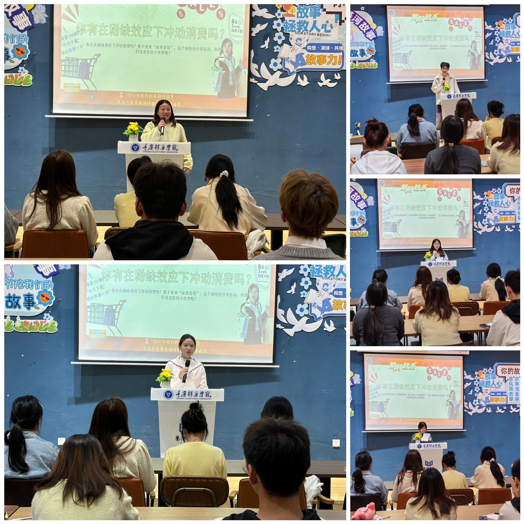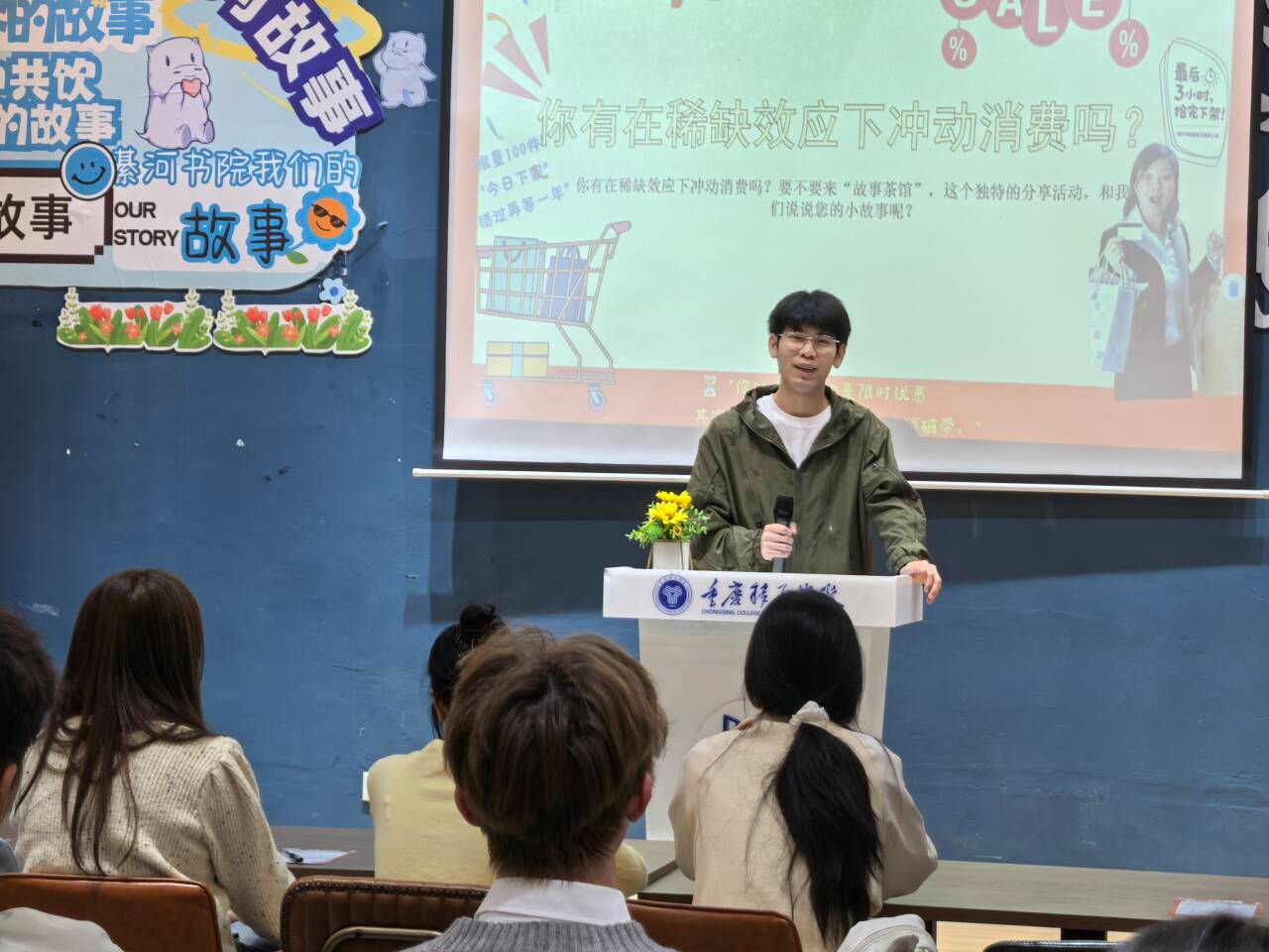 为进一步践行我校“信息产业商学院”的办学定位,深化学生故事力思维能力,10月22日,綦河书院以“稀缺陷阱回忆录:那些冲动的消费瞬间”为主题开展了故事茶馆系列活动第42期,引导同学们在故事分享中拆解冲动消费的心理密码,将商科思维融入生活智慧中。