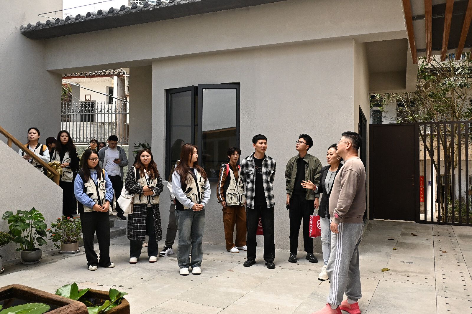 作为重庆移通学院校地合作共建的标杆项目,东溪书院成为本次研学的重要一环。书院建筑古朴典雅,万卷藏书浸润墨香,营造出静穆而浓郁的文化场域。同学们在有序参观中,深入了解其“书院+民宿+公益图书馆”的多元创新模式及发展愿景。东溪书院自9月26日揭牌以来,持续探索校园与社会的有机链接,此次实地探访,使同学们深切体会到书院在推动文化传承与实践育人方面的前沿理念与扎实成效。