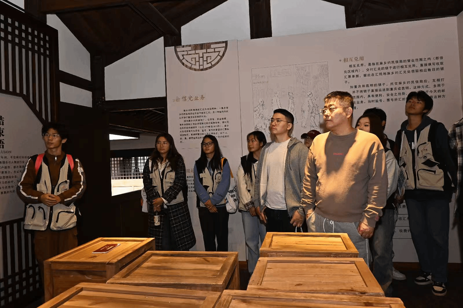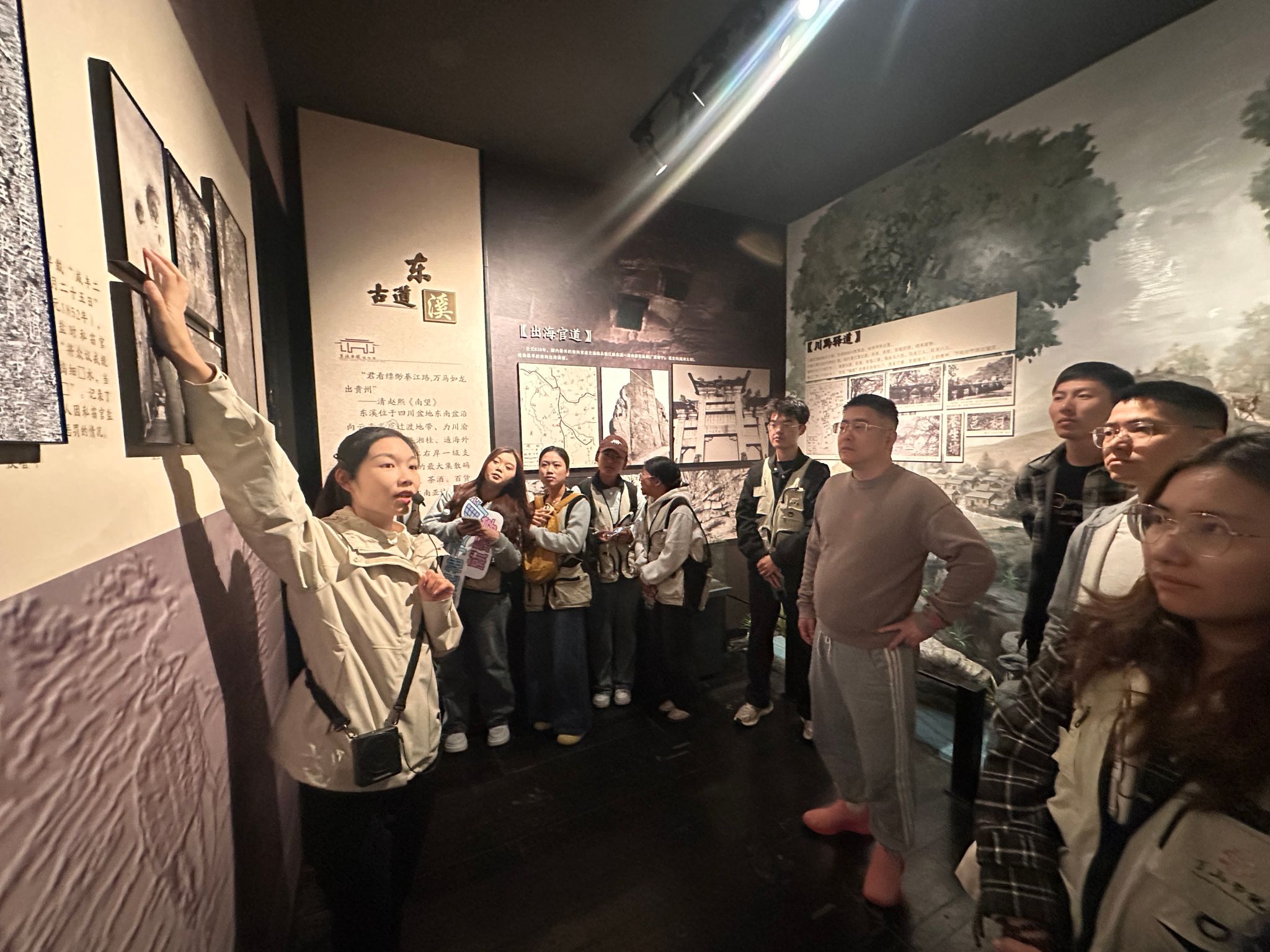 随后,队伍探访了西南地区古老的“麻乡约民信局”,深入研习其独特的邮政业务体系、传书方式与创始传奇,感知民间通信中蕴藏的智慧与温度。行程中还走访了蕴含深厚移民文化的万天宫,以及连接川黔商贸往来的太平石桥。同学们立于古桥之上,遥想昔日商旅络绎、文化交融的繁盛图景,切身感受交通脉络对区域经济与文化互动的深远影响。
