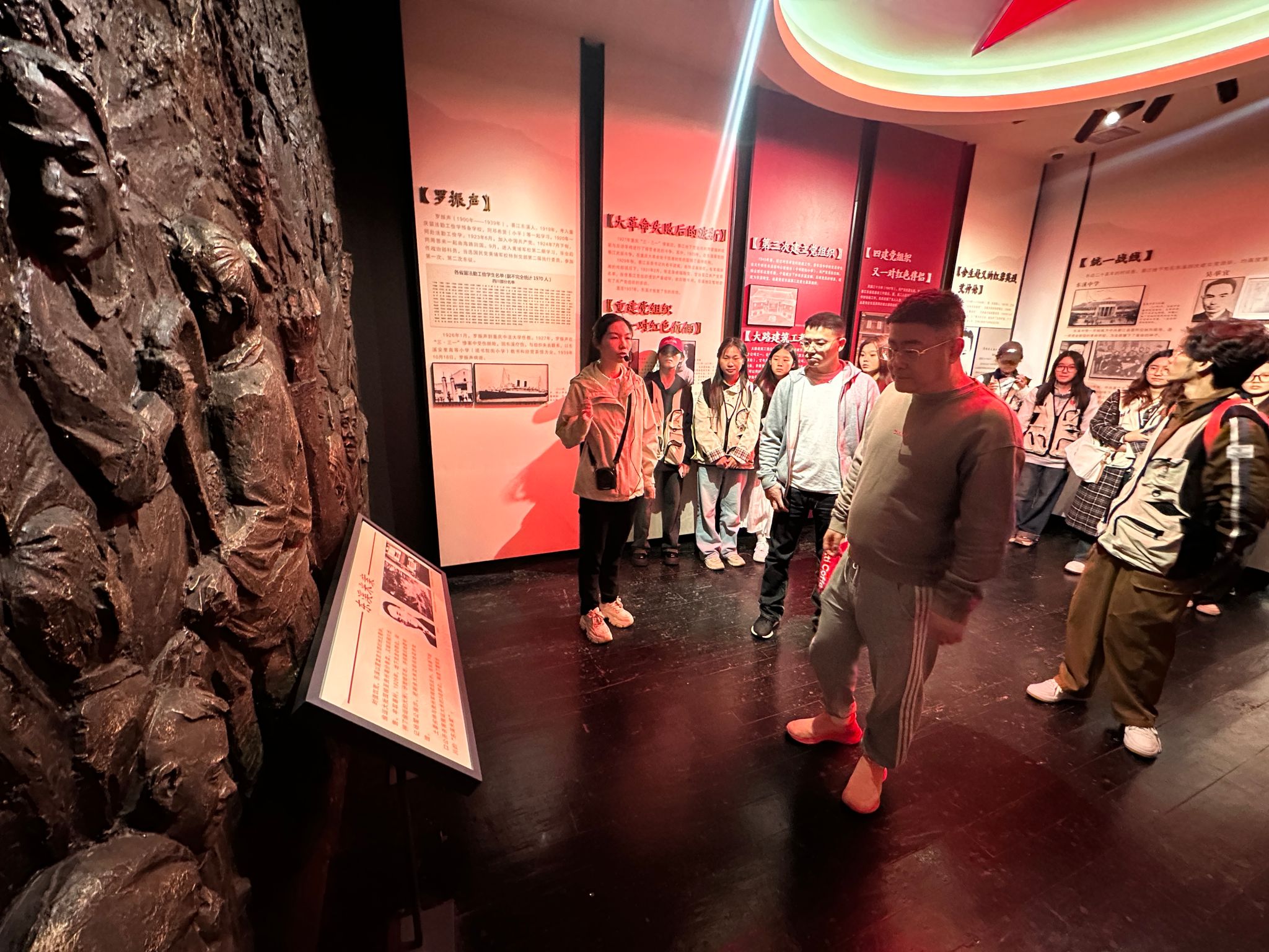 研学首站,师生一行走进东溪古镇陈列馆。在专业讲解的引领下,同学们系统了解了古镇作为交通枢纽的重要地位与其深厚的移民文化底蕴。馆内重点呈现的红色记忆尤为动人:从震动巴蜀的“东溪米案”共产党人危石顽、郝谦无畏强权、为民抗争的英勇事迹,到东溪中学作为地下活动据点、在抗战烽火中播撒革命星火的峥嵘岁月;再到李冰洁、夏奇峰等志士坚守信仰、吴忠将军铁血护国的光辉人生——一段段热血往事,织就东溪鲜明的红色基因,深深震撼着在场每一位师生。