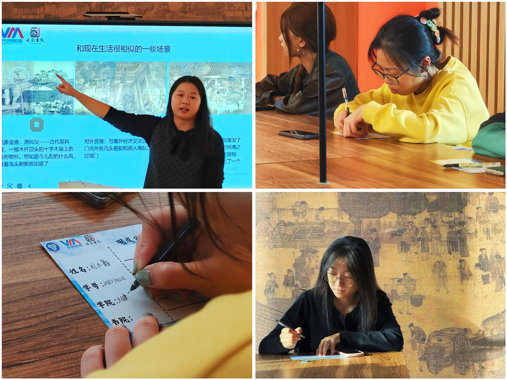 为深化美育工作,打破传统艺术赏析的边界,古剑书院以零艺术门槛为起点,开展此“画”怎讲——名画赏析活动(第2期),本期赏析内容为中国十大传世名画之一《清明上河图》,直接将北宋都城汴京“搬进”书院,创新性采用跨学科视角,来了一场穿越千年的Citywalk!拿着放大镜放大10倍看,才发现画里悄悄藏着宋人日常生活的精致与风雅。