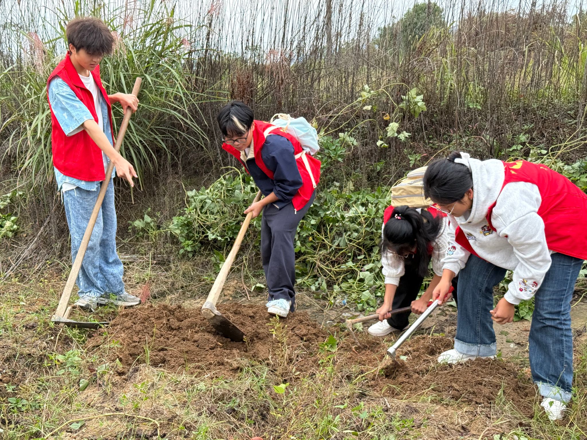 挖红薯环节则将劳动热情推向高潮,同学们在农户指导下分组协作,挥锄、清蔓、捡拾、装筐,动作由生涩到熟练,田间不时传来发现“红薯宝藏”的惊喜欢呼。泥土沾满双手,汗水浸湿衣背,但笑容始终洋溢在每个人的脸上。