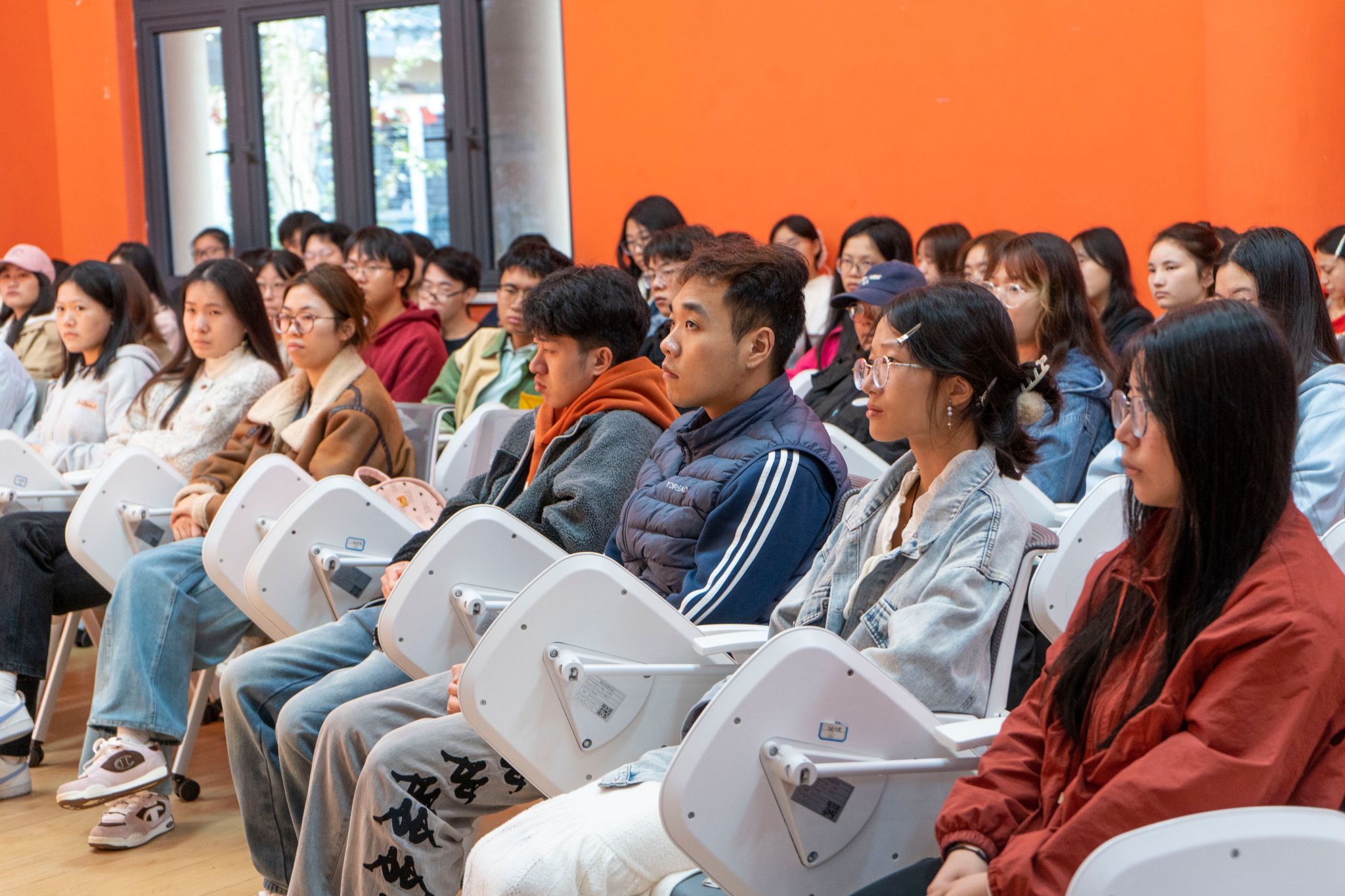活动当天,含光・报告厅早早便洋溢着浓厚的学习氛围。学子们提前15分钟陆续到场,有的在笔记本上列好“专业与职业如何匹配”“AI时代该学哪些技能”等困惑清单,有的则打开手机备忘录准备实时记录,就连后排加座的同学都挺直腰背,眼神里满是对干货内容的期待。课程开始,程大为教授以一句“职业规划不是写一份‘不变的计划书’,而是搭建一套‘能生长的成长体系’”开篇,瞬间抓住了学子们的注意力。