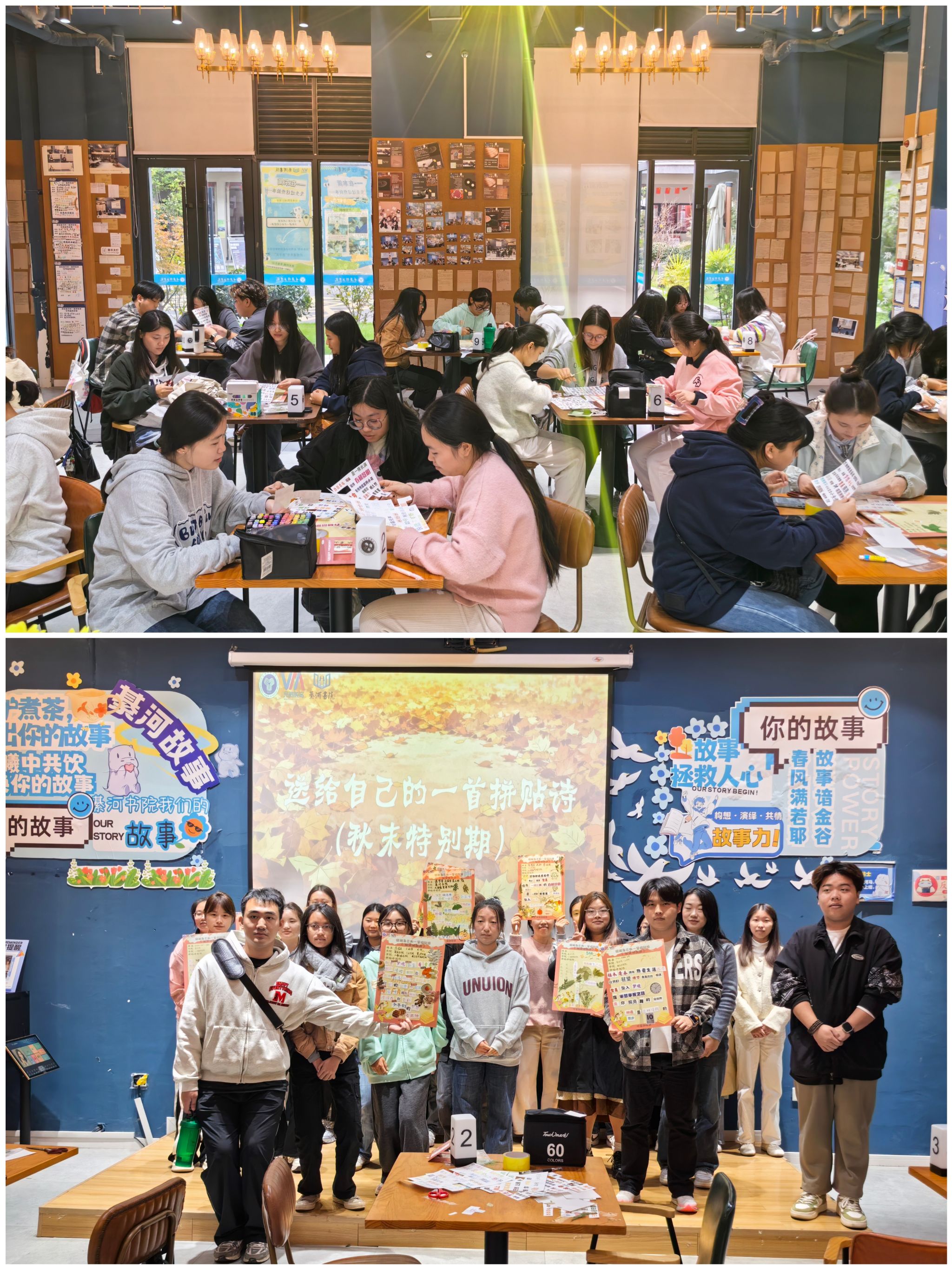 “一年好景君须记,最是橙黄橘绿时”。当山城的秋风裹着细雨,为秋末晕染出温柔与清寂,綦河书院以“故事力”为笔,在十一月的初寒中,写下一场与文字、与自我、与季节的对话。“送给自己的一首拼贴诗”秋末特别活动,在落叶纷飞中悄然展开,本次活动引导同学们将零散的字句重新拼合,把秋日的心绪与生活热情凝注于方寸纸页之间。这不是一场简单的创作,而是一次让抽象情感落地、让叙事力生长的温暖实践。