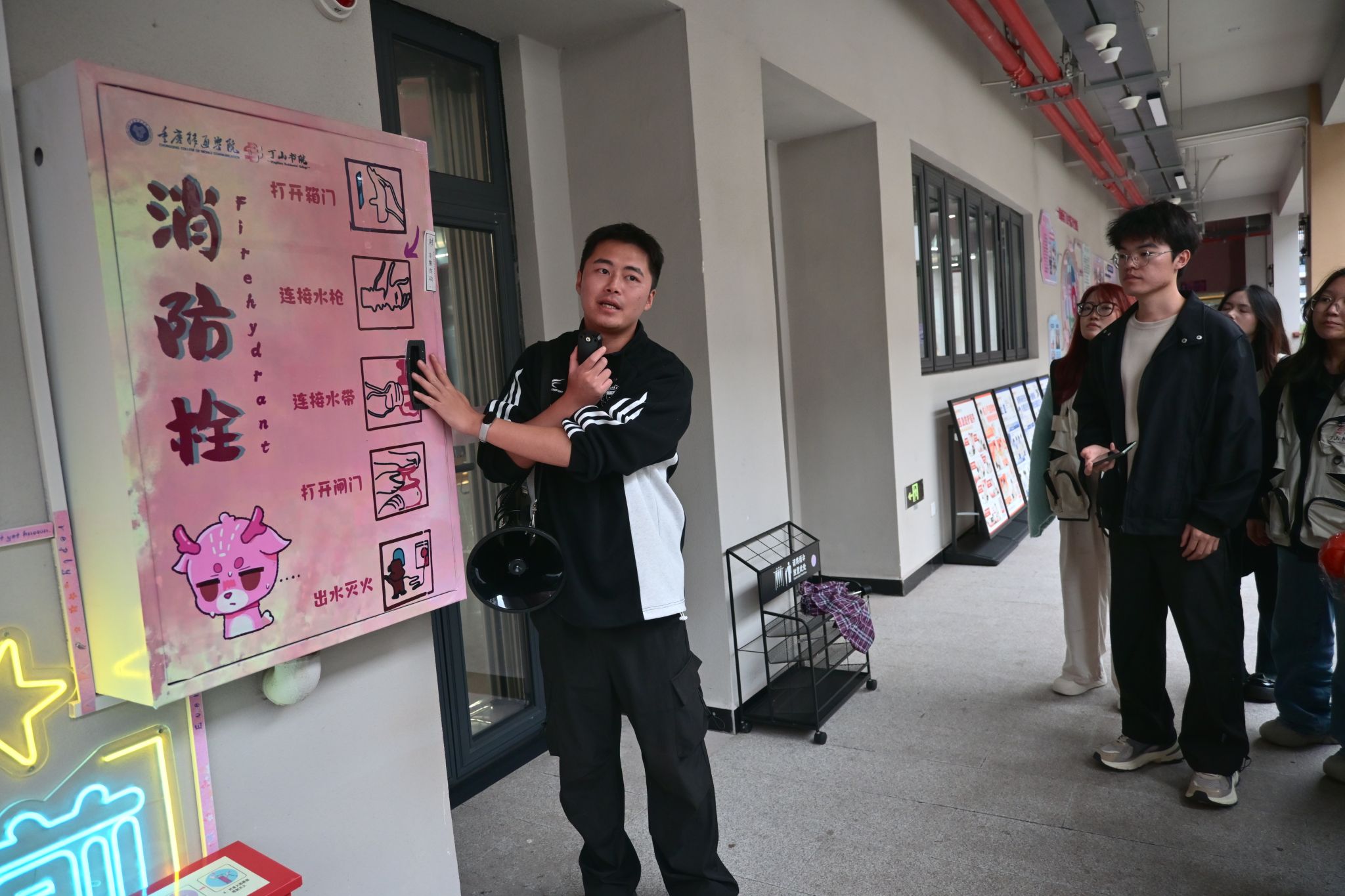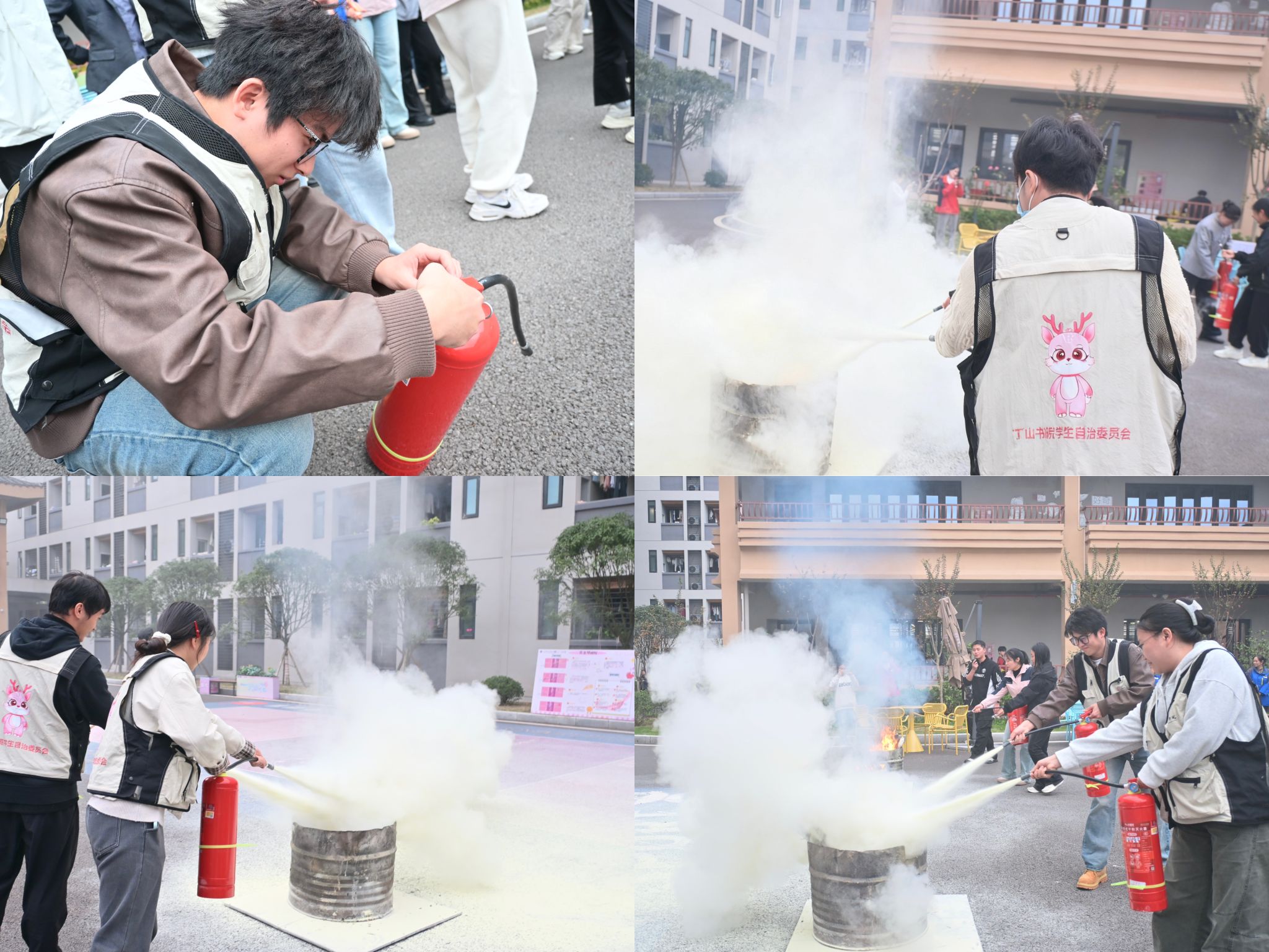 “以前管理功能室只知道‘锁好门、关电源’,现在不仅亲手使用了灭火器、防毒面具,还对各种报警器和消防栓有了更深的了解,如果书院发生突发情况我们也能及时进行一个预先的处理。”丁山书院功能室管理员黄奕表示本次培训切实提升了作为书院管理员的责任意识与实操能力。