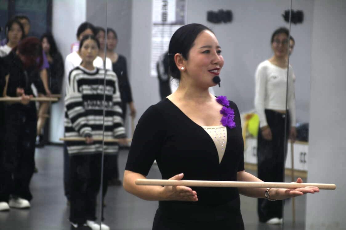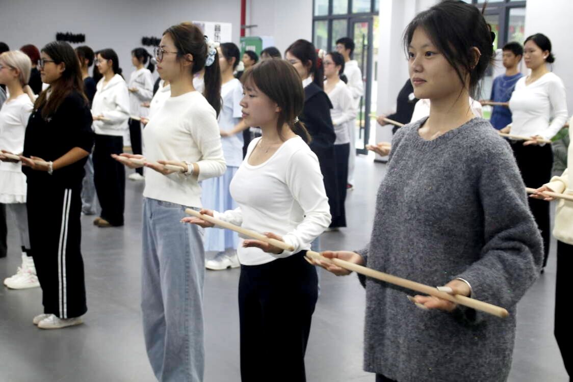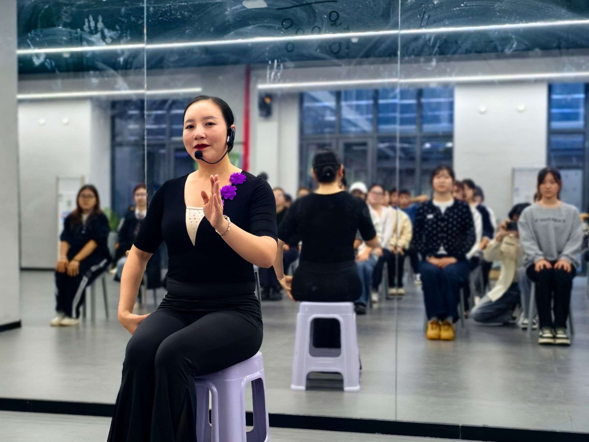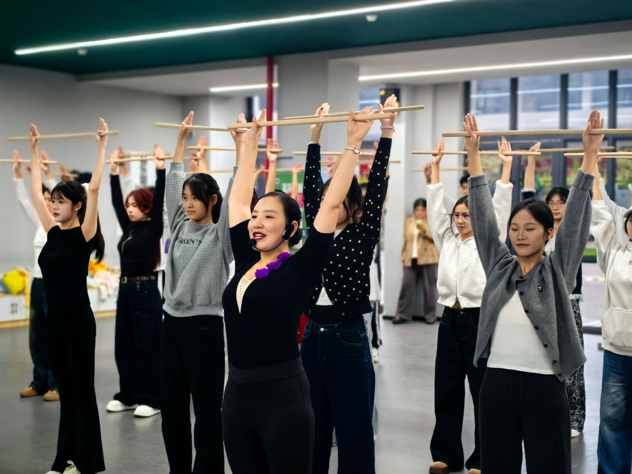 “你知道自己平时是怎么站的吗”培训一开始,刘春兰老师就抛出了这个看似简单却值得深思的问题。她通过生动有趣,通俗易懂的形体自测小方法,引导同学们关注日常被忽略的身体细节——比如肩膀是否紧绷,站姿是否歪斜。这一环节中,刘老师通过拆解形体与健康、礼仪的深层关联,帮助同学们建立起清晰的形体认知,也为后续的系统学习打下了科学扎实的基础。在老师的带领下,同学们在互动中意识到:原来,优雅的第一步,是学会“看见”自己的身体。