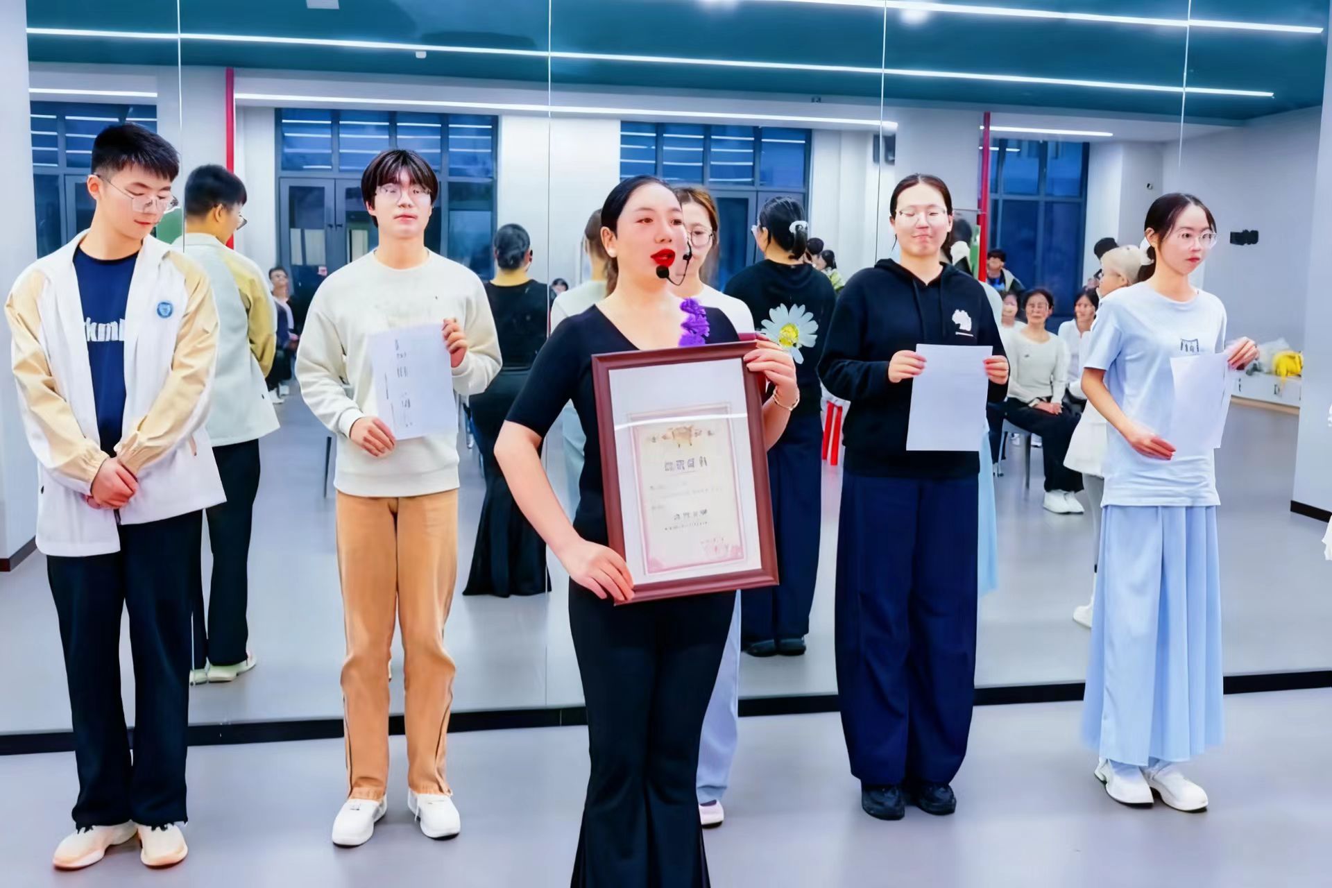 俗话说,“光说不练假把式。”这场礼仪培训最精彩的环节莫过于现场模拟颁奖,同学们踊跃上台,轮番体验颁奖者与受奖者,在真实情境中实践刚刚所学的每一个细节,老师的指导贯穿始终,从手势位置到步幅节奏,从眼神交流到微笑弧度——一点点调整,一步步优化。大家起初略带生涩的动作,在一次次专业点拨与掌声鼓励中逐渐变得流畅自然,现场掌声笑声不断,抽象的礼仪规范被同学们真正地内化于心、外化于行,礼仪之美在互动中悄然生长。