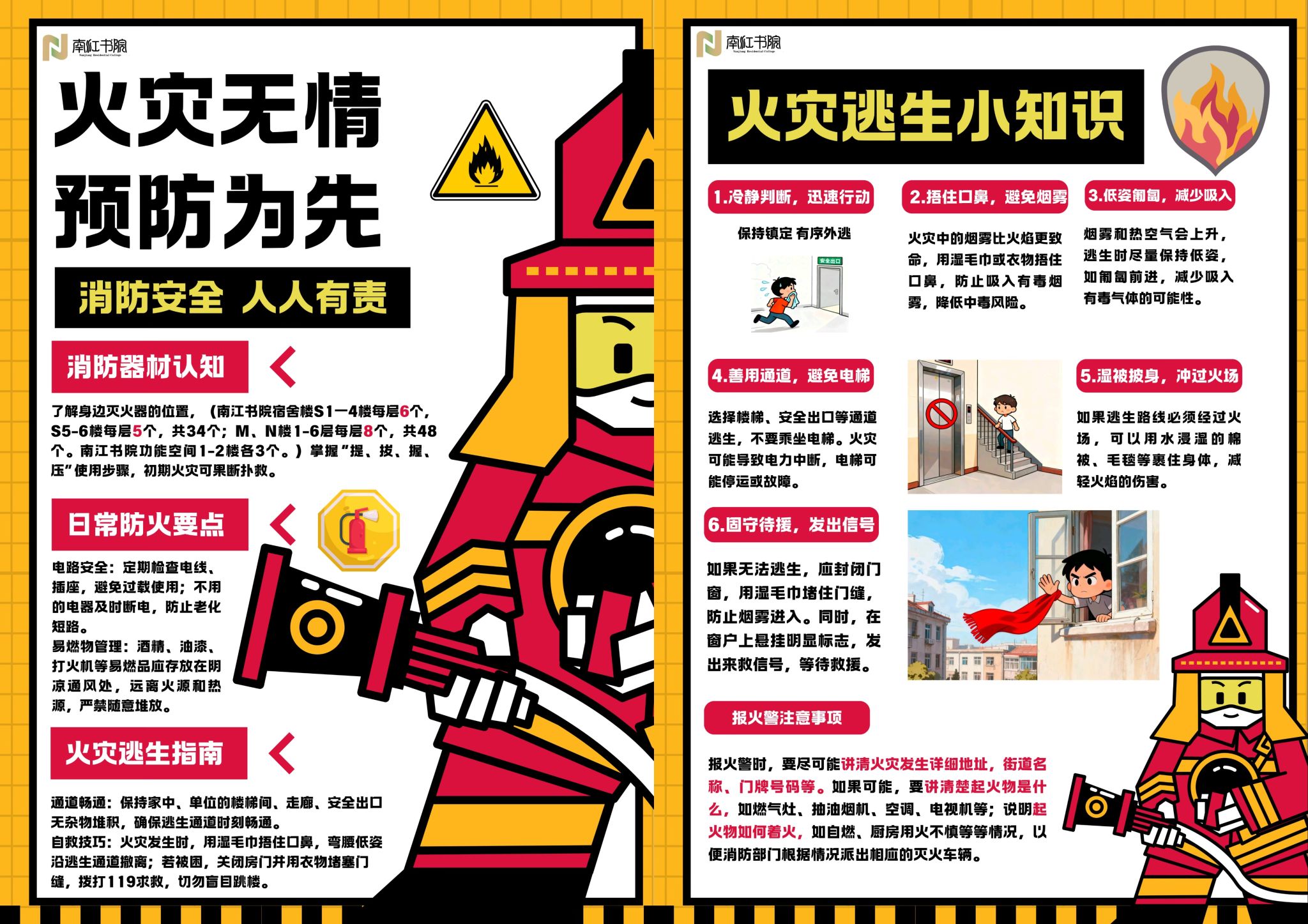为进一步筑牢校园安全防线,同时深化“家文化”育人理念,南江书院积极响应校园“119”消防宣传月号召,与学校保卫处消防安全培训衔接,在书院开展了“消防技能培训演练+暖心走访”特色活动。通过“安全认知”与“温情关怀”的双线并进,为学子们带来了别具一格的书院生活体验。