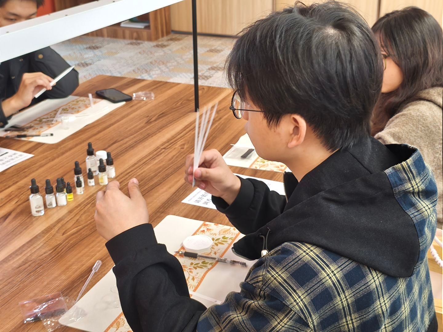 此次调香活动,不仅让同学们在亲手调配香氛的过程中,收获了满溢的感官感受,更以“嗅觉艺术”为纽带,搭建起一场生动的美育实践。在挑选精油、控制滴量、设计香调的过程中,同学们学着倾听自己的感官偏好、表达对“美”的独特理解,而这种“从感受美到创造美”的过程,正是美育赋能心灵的核心意义。参与同学反馈:“动手调香的过程特别治愈,不仅能静下心来感受气味的美好,更慢慢学会从细微处发现生活里的美。”未来,古剑书院将继续以“感受”为核心,围绕“表达心灵美”主题,策划更多融合嗅觉、视觉与触觉的美育活动,让同学们在与气味、与艺术的互动中,持续深化对美的感知力,让每一次体验都成为点亮心灵美育的微光。