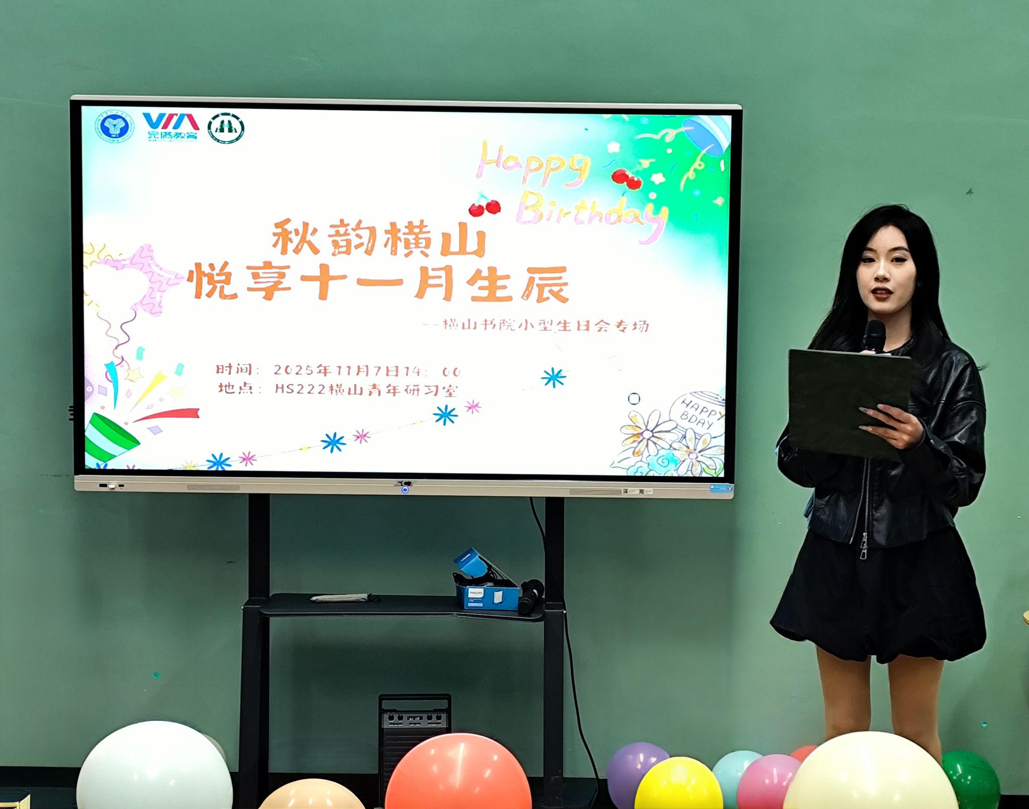 秋意渐浓,桂香满园。为强化书院师生仪式感与归属感,进一步增进师生情感联结和社区交流,11月7日14:00,横山书院在HS222横山青年研习室为十一月生日的学生们打造了一场以“秋韵横山·悦享十一月生辰”为主题的小型生日派对,20余位学生寿星齐聚一堂,在温馨互动与欢声笑语中,共同感受书院如家般的温暖与陪伴。