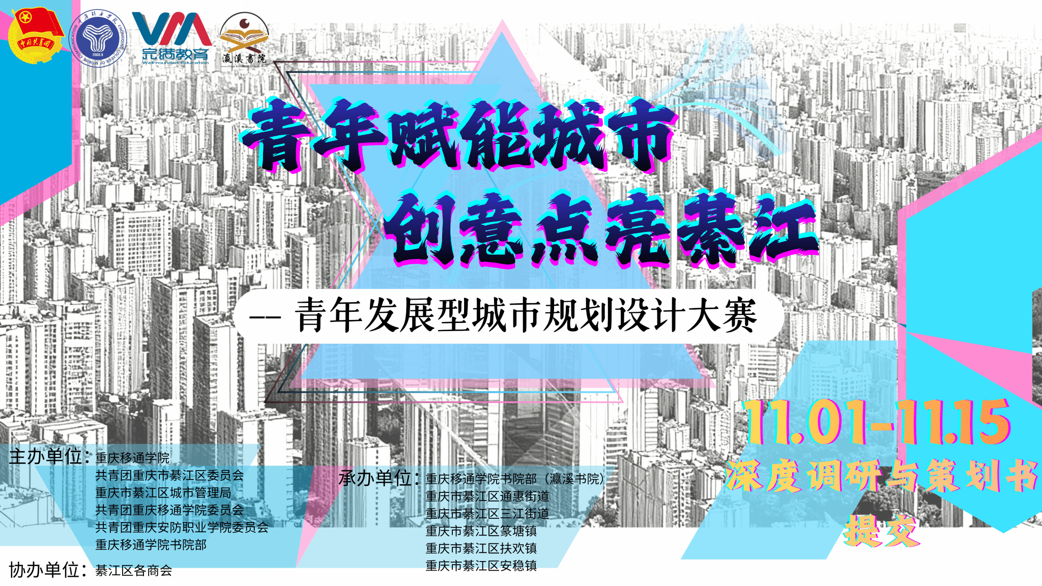为此,特在第一届“城市更友好·青年更有为”青年发展型城市规划设计大赛成功举办的基础上,举办綦江区第二届“青年赋能城市·创意点亮綦江”青年发展型城市规划设计大赛。本次大赛重庆移通学院、共青团重庆市綦江区委员会、重庆市綦江区城市管理局、共青团重庆移通学院委员会、共青团重庆安防职业学院委员会、重庆移通学院书院部,重庆移通学院书院部(瀛溪书院)、重庆市綦江区通惠街道、重庆市綦江区三江街道、重庆市綦江区篆塘镇、重庆市綦江区扶欢镇、重庆市綦江区安稳镇、重庆市綦江区通惠街道新兴社区、重庆市綦江区通惠街道桥坝村村民委员会、重庆市綦江区安稳镇崇河村村民委员会、重庆市綦江区篆塘镇珠滩村村民委员会、重庆市綦江区扶欢镇(安育村、崇恩村)村民委员会共同承办,通过持续推动青年发展型城市建设,激发青年群体的创新活力与责任担当,引导广大青年学子深入参与綦江区的规划与发展。