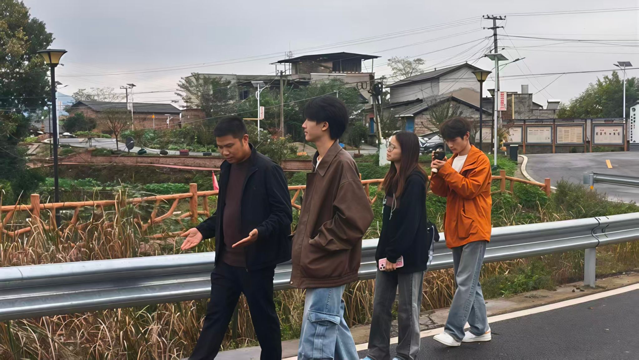 在桥坝村考察期间,村党总支书记张后生为同学们系统讲解了该村以交通动线为核心的发展规划。桥坝村依托串联全村12个社的公路环线,将在车流密集的二号、五号路段重点打造特色打卡点,同时推进与草莓种植户陈林的直播合作,并积极探索与学校共建体验农场,通过 “交通引流—农旅留客”的创新模式盘活乡村资源。调研过程中,同学们围绕关爱老年人群体、创新农产品营销、优化打卡点设计等方面,提出了多项富有创见的建议。