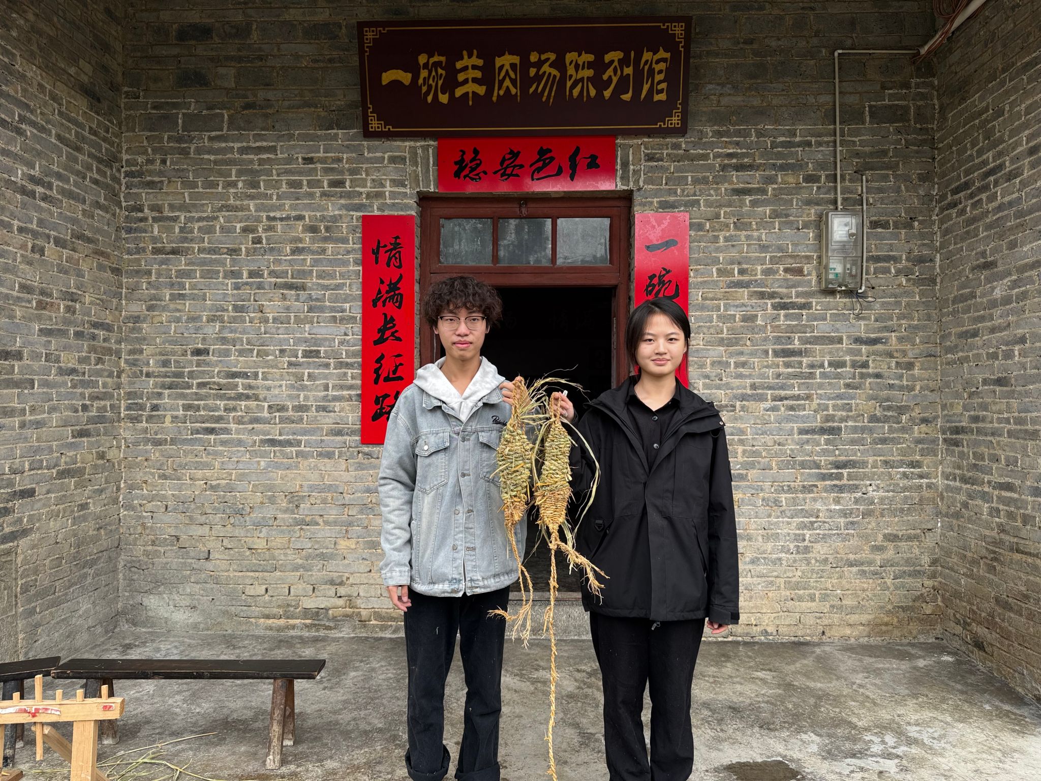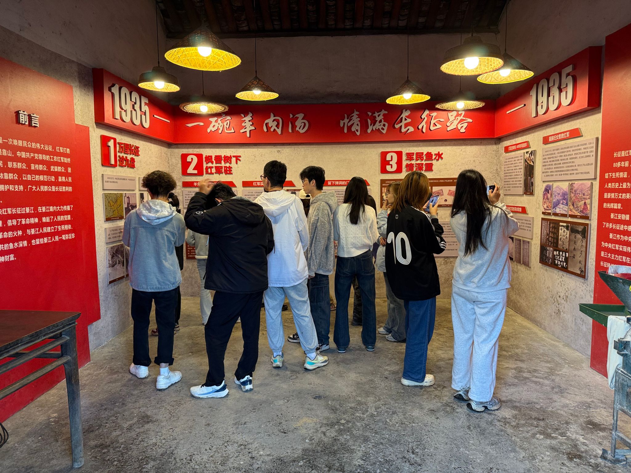 在崇河村的实地走访中,青年学子在驻村书记文科的引领下,开展了一场富有深度的乡土实践。参观“安稳红军村”文化墙与长征主题展厅,深入了解了该村作为“四渡赤水零公里”的红色历史背景;亲身体验传统编绳技艺,品尝当地特色鲜果,并实地走访“感恩小院”“香树下讲堂”等人居环境更新点位,结合村庄整体规划,全面感知乡村发展的实践脉络。同学们在沉浸式调研中,不仅触摸到崇河村真实的发展肌理,也逐步探索出一条红色文化与乡土资源相融合的特色发展路径,通过“红色引领+乡土体验”的融合模式,打造集党史教育、技艺传承、农事体验于一体的红色乡土研学体系。