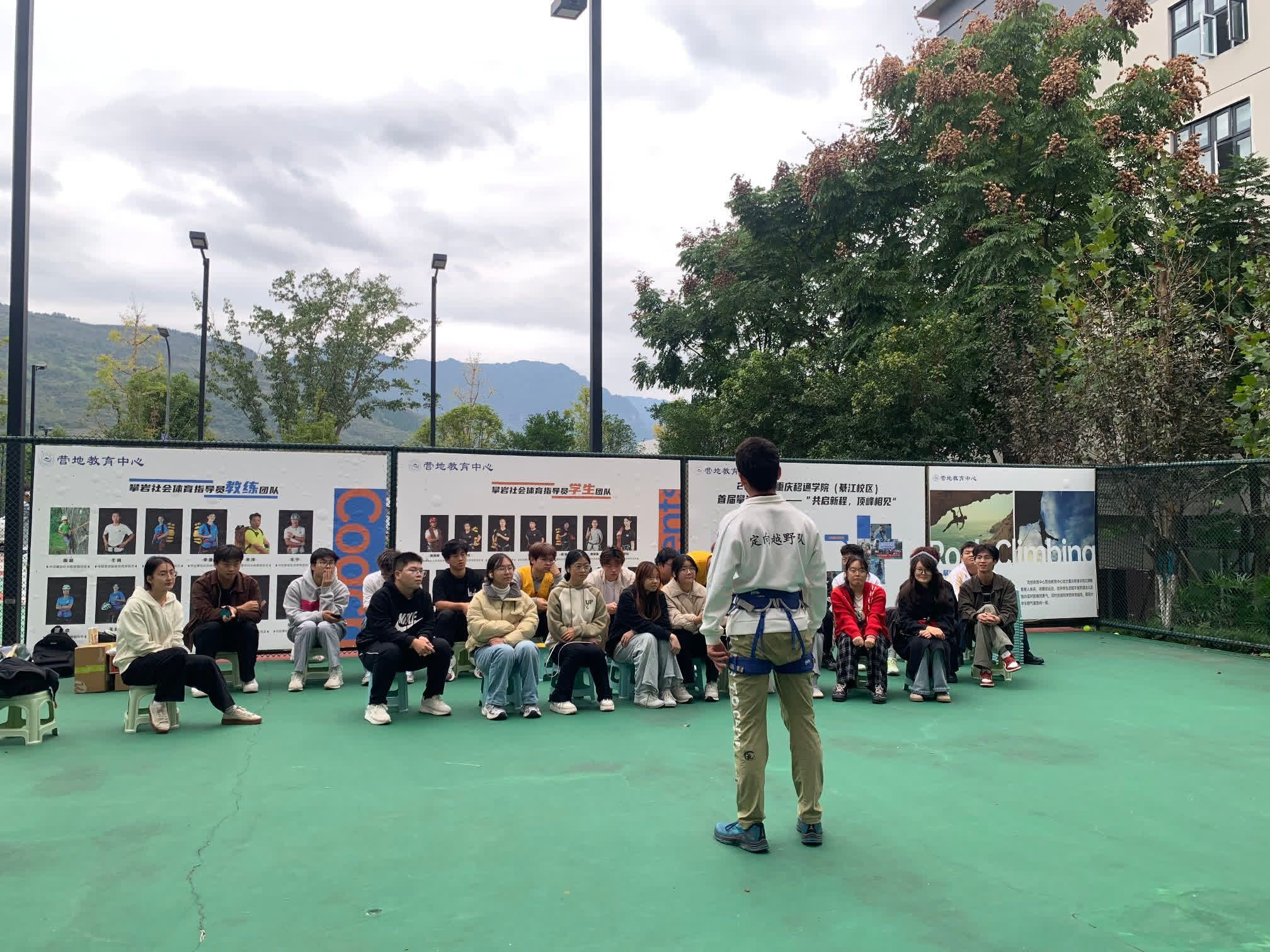 本次活动,邀请到了攀岩协会社长、国家攀岩初级社会体育指导员李孟松同学的细致讲解。从安全装备的正确佩戴,到攀岩动作的分解示范,再到突发状况的应急处理,每一个环节都体现了组织工作的周密与专业。参与成员全神贯注聆听讲解,并主动相互检查装备,展现出严谨认真的态度和初步形成的团队默契。