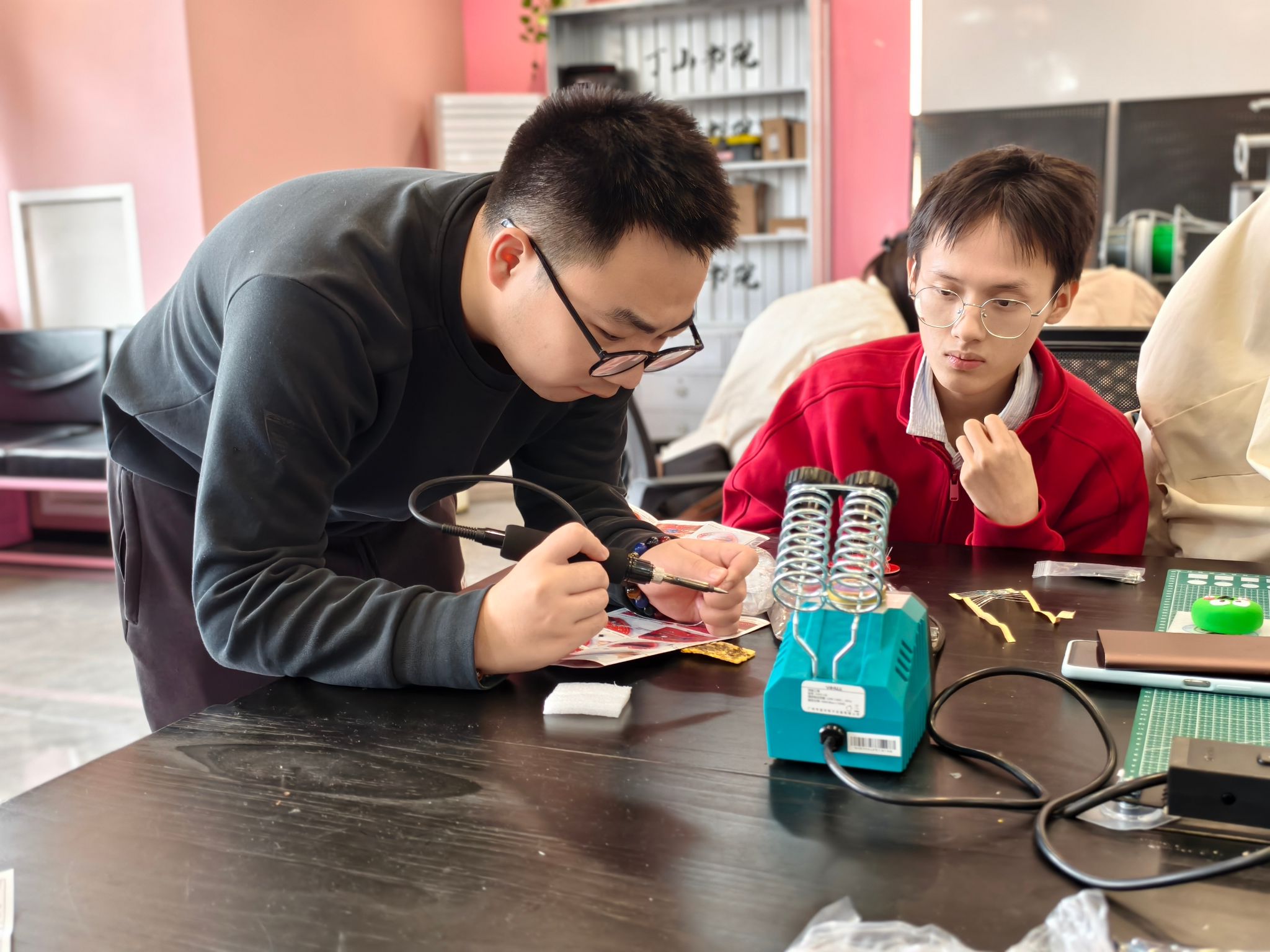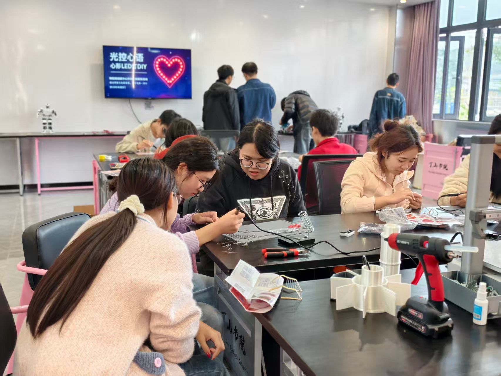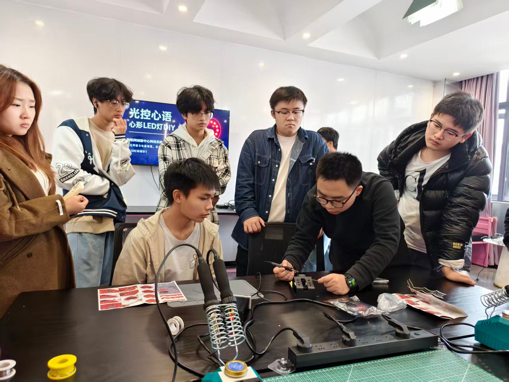 “我从未想过,工科也可以如此浪漫,”来自大健康管理学院的李同学分享道,“当最后一颗LED亮起,整颗心在手中‘活’过来的瞬间,我真实地触摸到了技术的温度。”而戏剧影视学院的吴同学对创作过程感触更深:“我平时接触的是镜头和剧本,今天第一次拿起电烙铁,感觉像在完成一件精密的雕塑作品。当最终调试成功,整颗心形灯均匀呼吸亮起时,我觉得这不仅是一次工科实践,更是一次融合了技术、艺术与情感的综合创作。”数字经济商学院的赵同学兴奋地表示:“没想到在书院里,能体验到理工科的活动项目。这个活动打破了专业的界限,让我们文科生也能轻松入门,感受到硬核技术的浪漫与美感。”