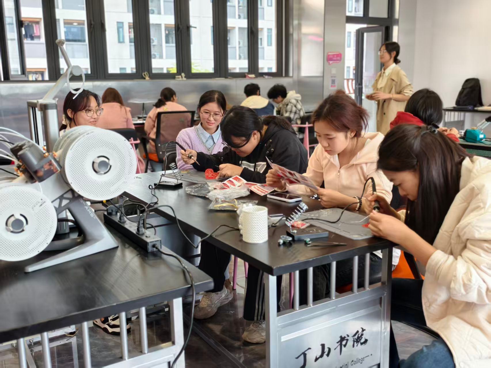 11月14日,丁山书院与物联网创新中心工坊在DS205摩羯座·阅览空间共同举办了一场融合光、技术创作的实践活动——“丁山智造·点亮流水灯”。本次活动是“书院社区”与“专业学院”在育人模式上的一次深度融合与积极探索,旨在通过跨学科的项目制实践,让不同专业背景的学生在动手创造中碰撞出思维火花,这不仅是一次焊接体验,更是一场连接硬件与心跳、工程与诗意的学科跨界探索。