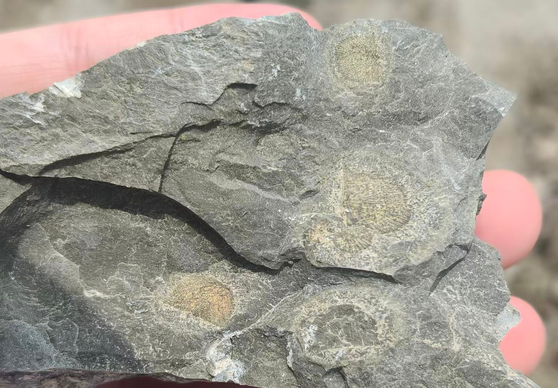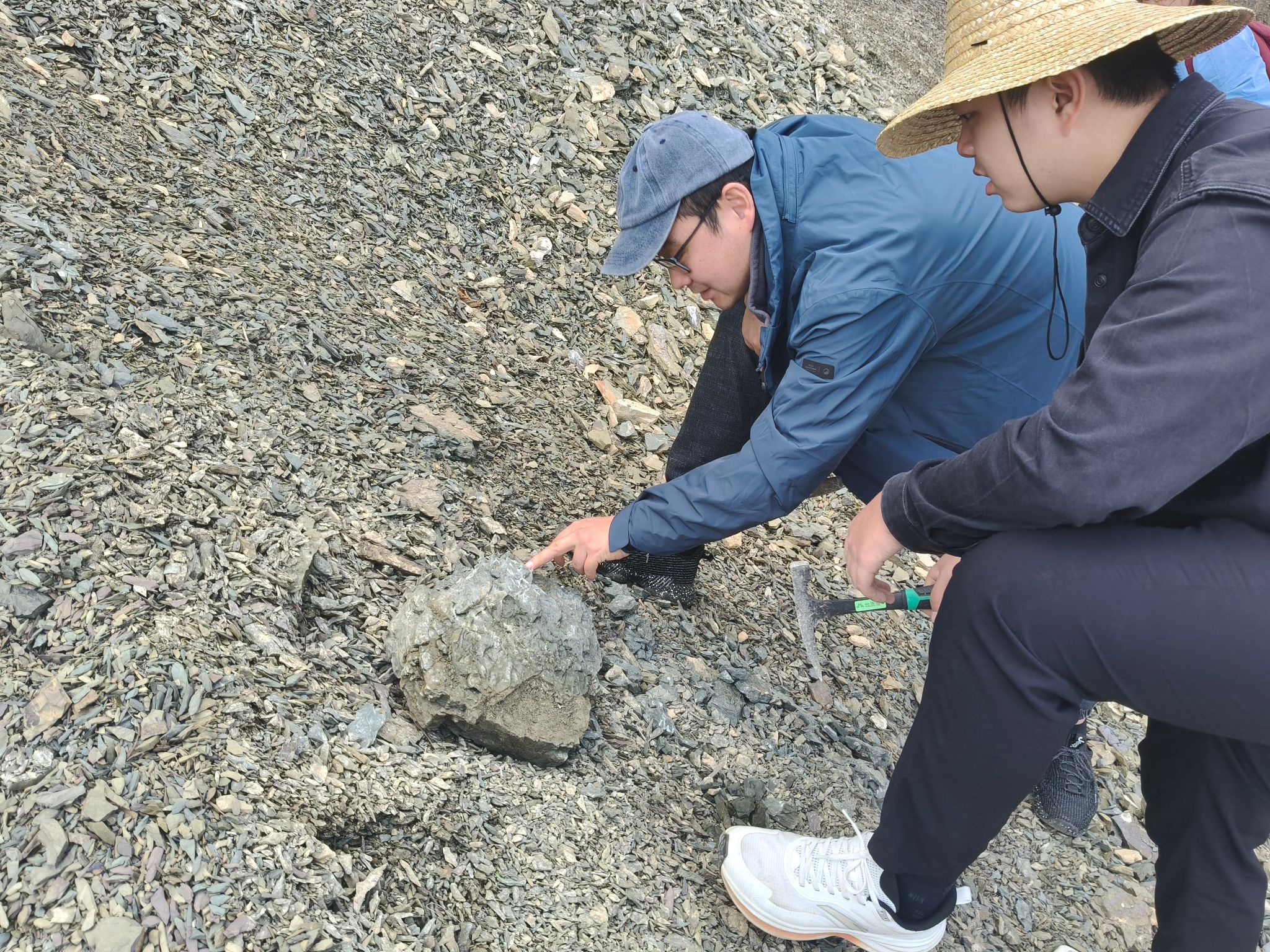 山野为课堂,岩石为“盲盒”。不一会儿,敲击声、讨论声、惊喜的呼喊声此起彼伏。“老师!我挖到的这个是不是海百合的根茎?”“看,这块石头上的纹路好像是腕足类的壳瓣!”“我这边有鹦鹉螺的纹路!”一位同学小心翼翼地捧出一块纹路清晰的化石,张锋博士老师俯身确认后点头:“这是奥陶纪的鹦鹉螺碎片,你们看它的螺腔分隔,正是它游动生活的见证。”