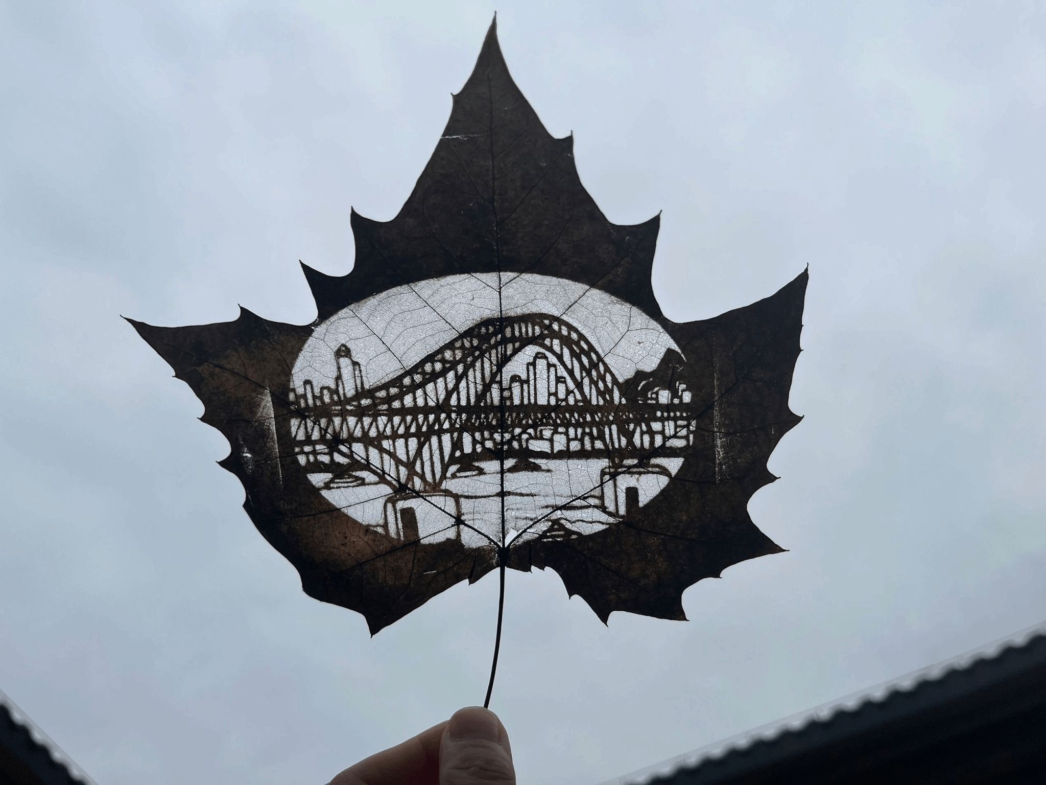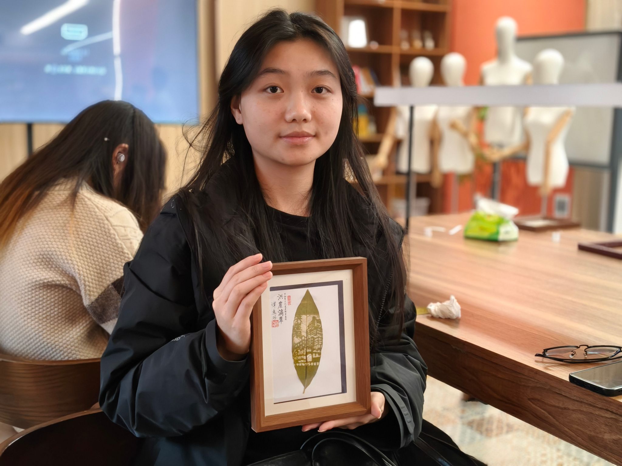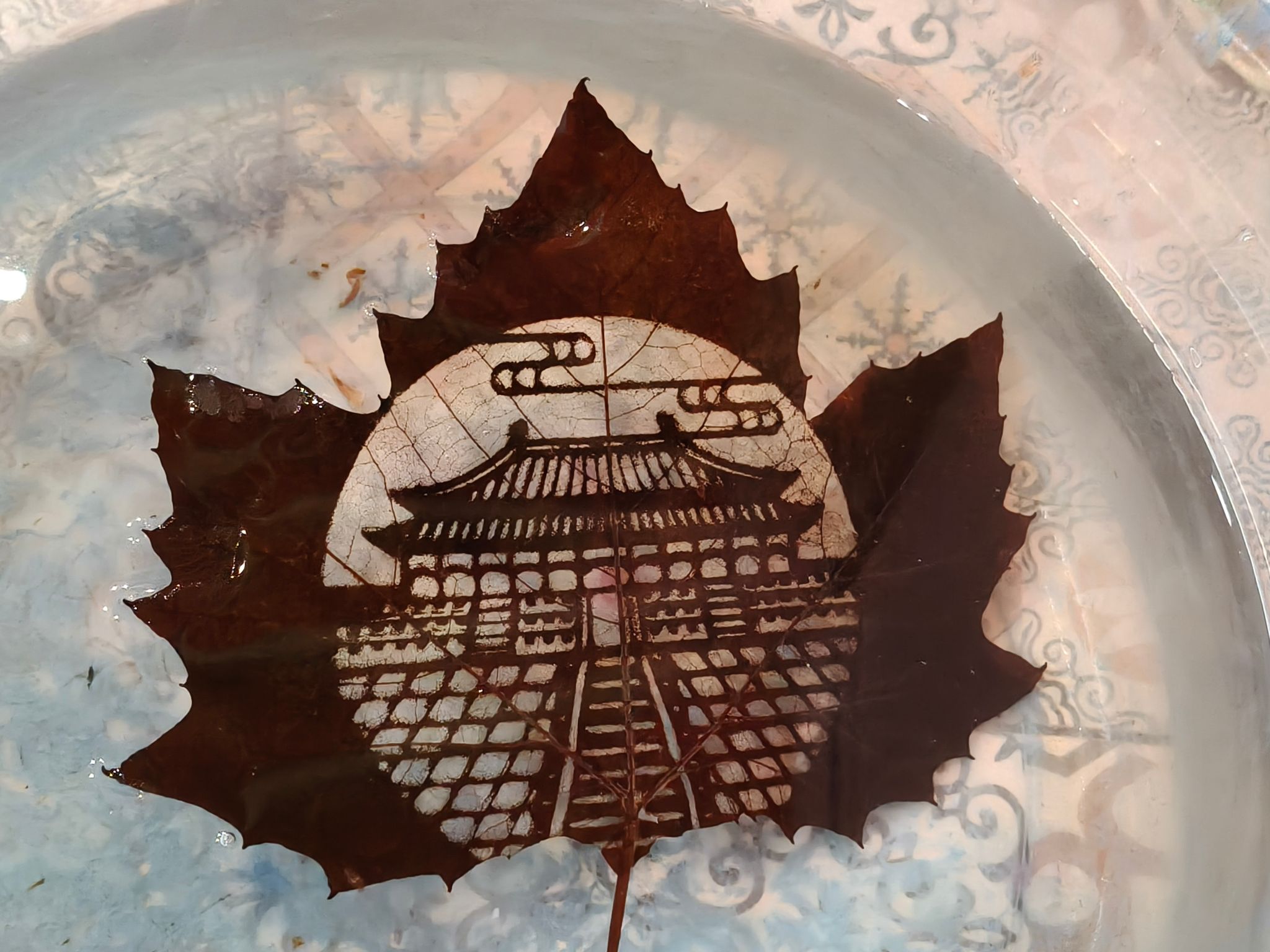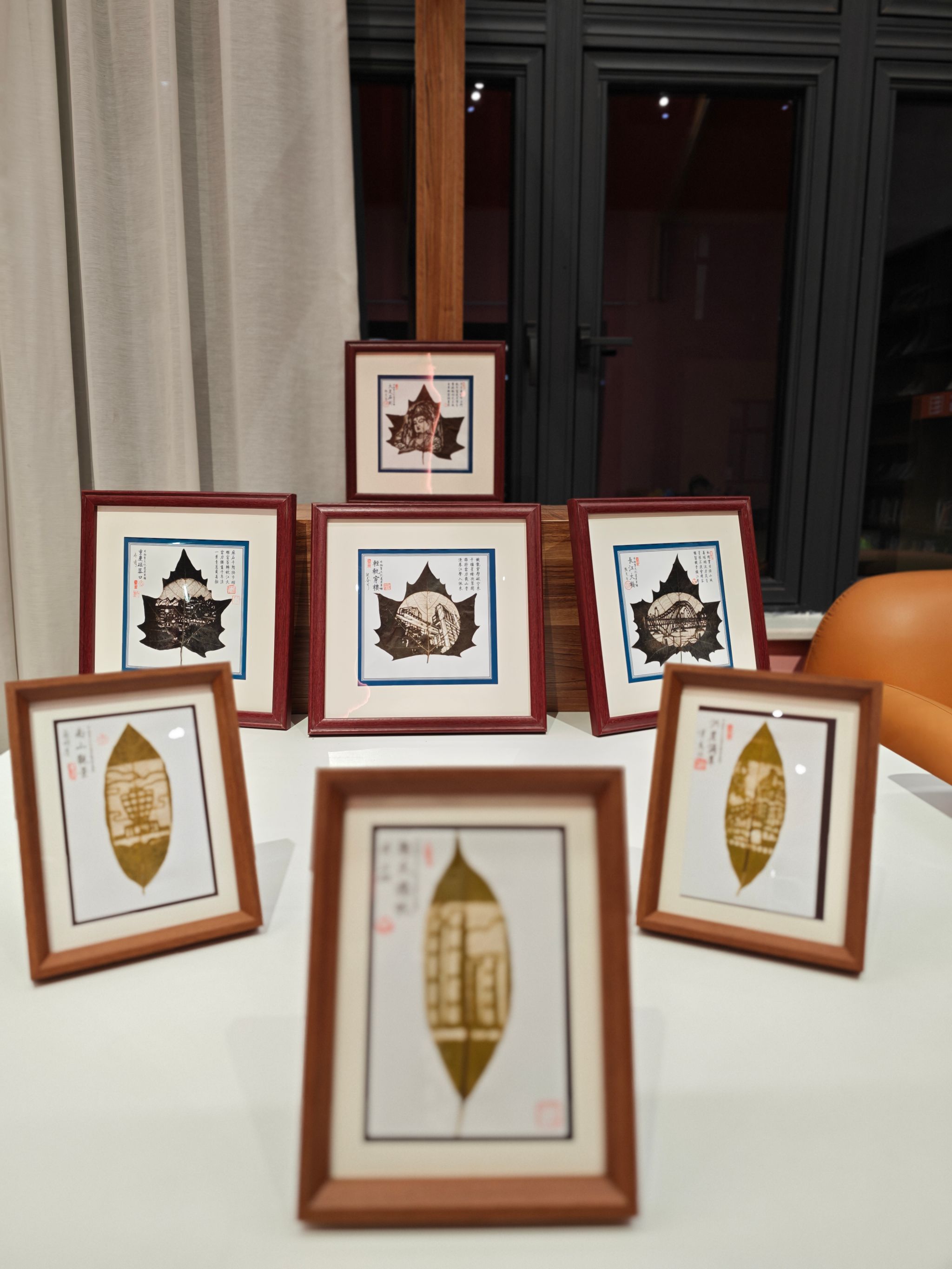 最终,经过落款盖章与艺术装裱,每片树叶都化身为承载匠心与美学的独特艺术品。