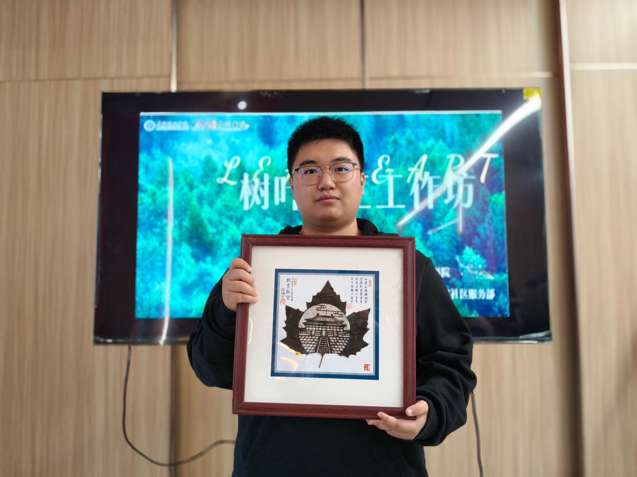 课程中,李明贵老师系统讲解了叶雕的历史脉络、文化内涵与工艺特点,生动阐释了树叶从自然载体到艺术表达的蜕变过程。同学们在聆听中,逐步打破了“落叶无声、终归尘土”的传统认知,深切感受到非遗技艺所蕴含的生命力与创造力,激发了亲手创作的热情。