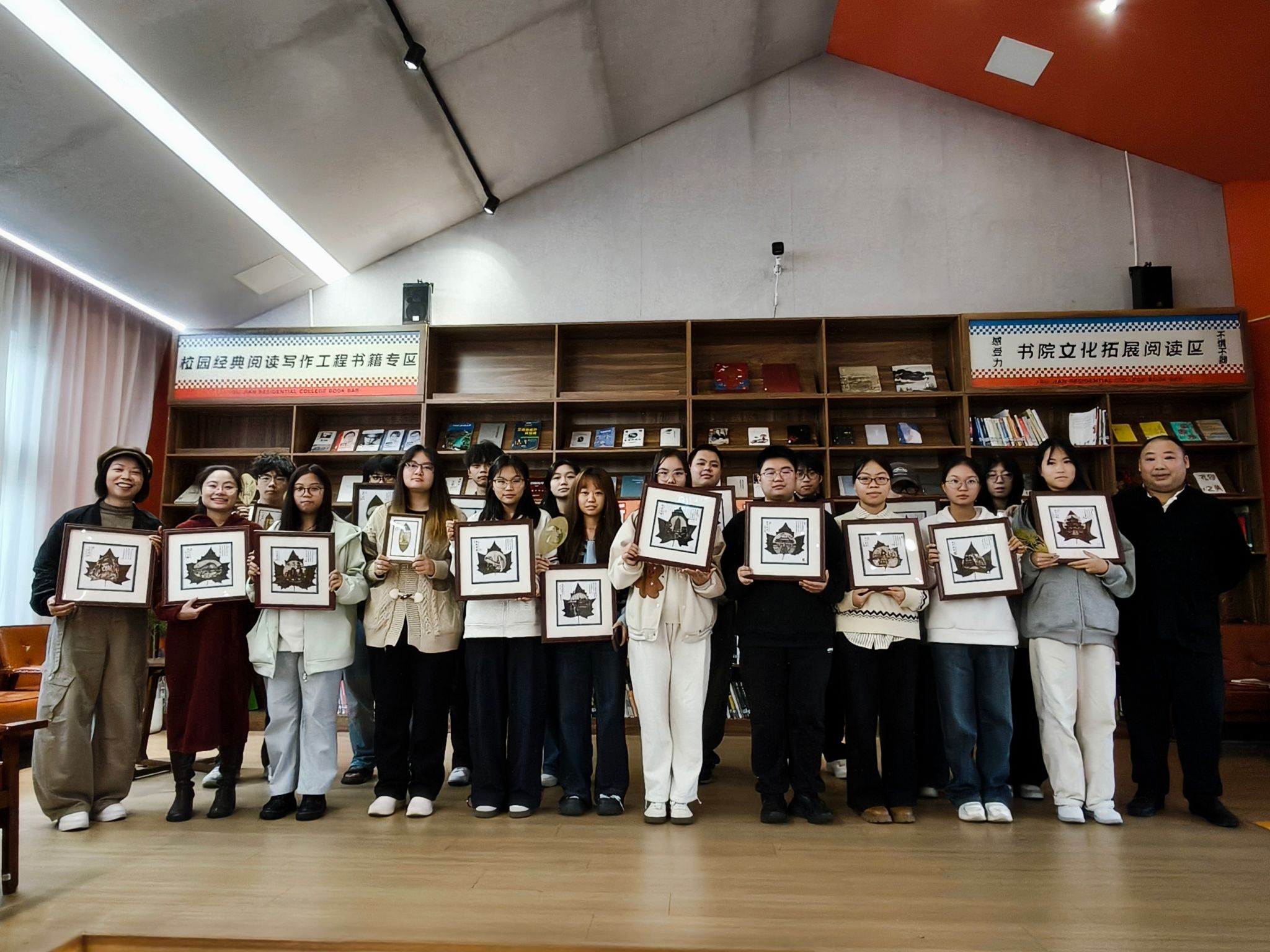 为深入贯彻落实国家关于全面加强和改进新时代学校美育工作的部署要求,积极响应推动中华优秀传统文化创造性转化、创新性发展的号召,古剑书院推出“树叶手工工作坊”实践课程,将美育实践与非遗传承深度融合。本期课程聚焦非物质文化遗产——叶雕技艺,特邀“重庆树叶制作技艺”非遗代表性传承人、市级乡村工匠李明贵大师现场授课,引导青年学子在动手实践中提升审美素养、增强文化自信,打造具有时代特色的美育实践平台。