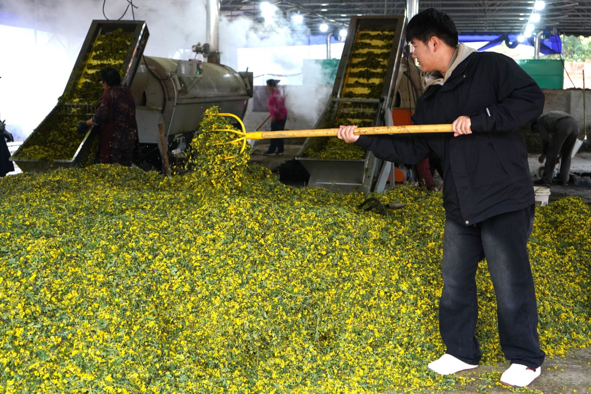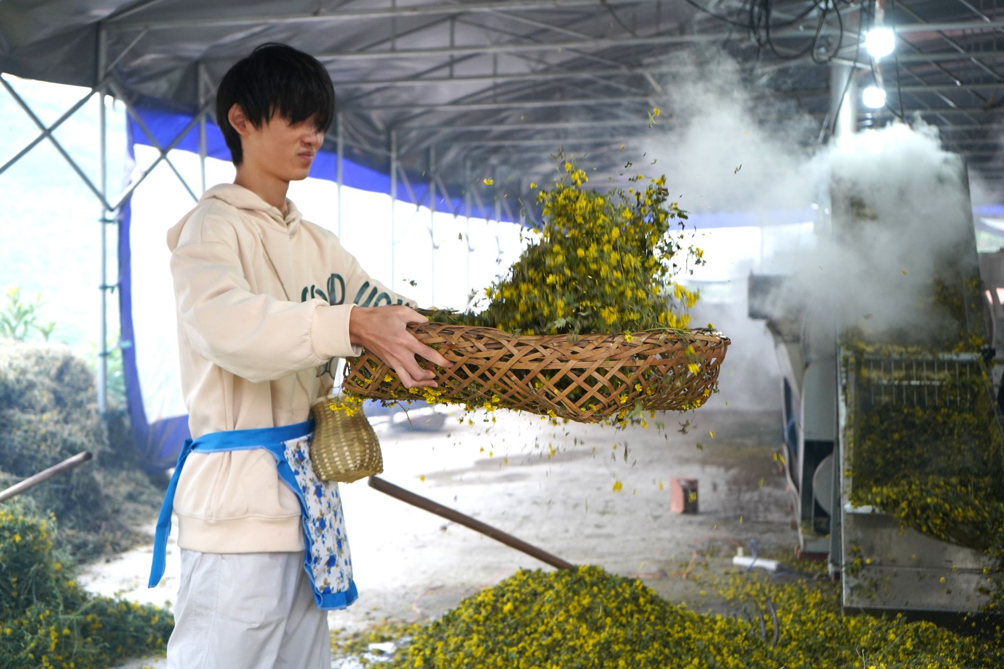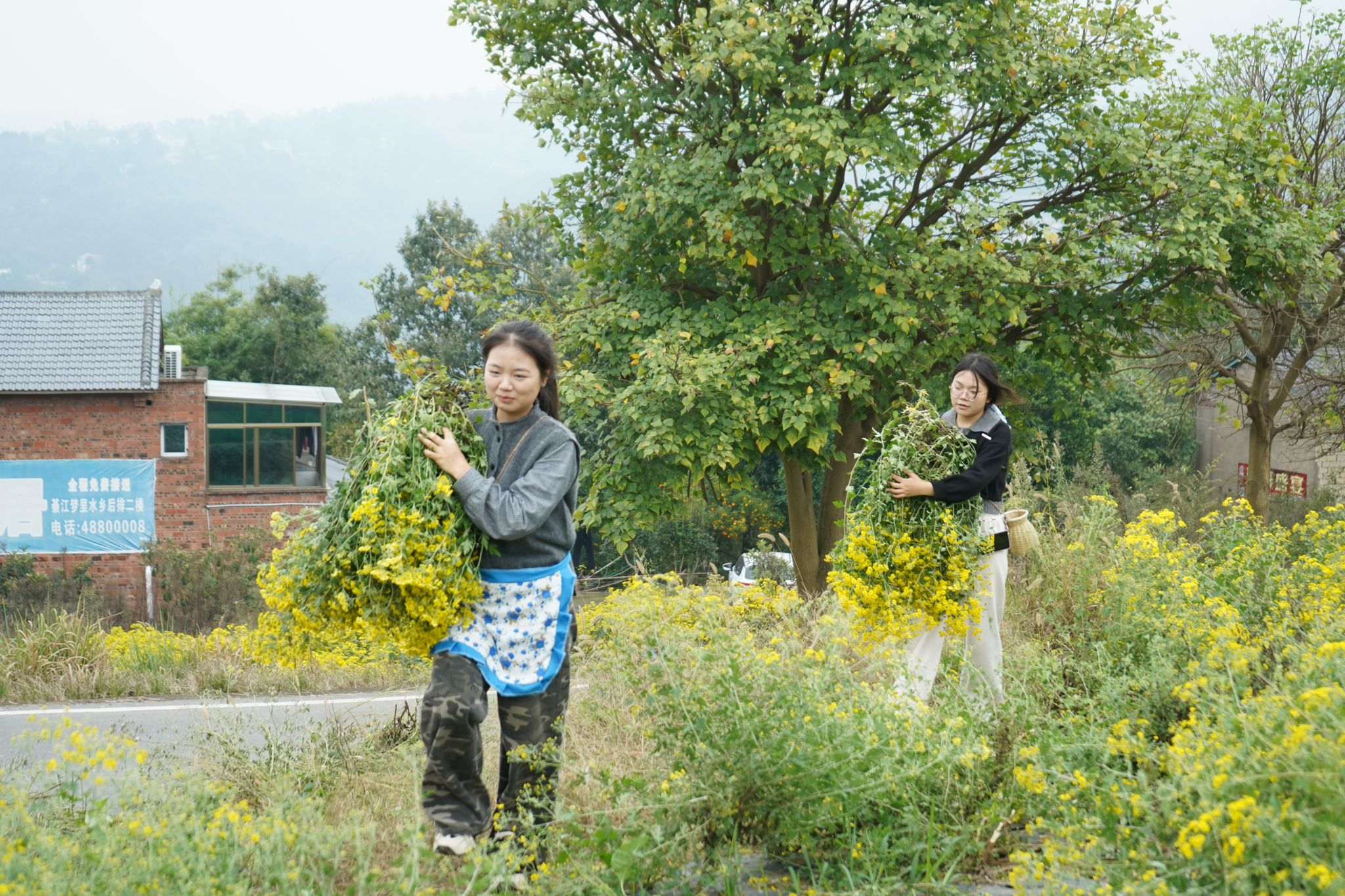 循着书院“校地联动、实践践美”的核心路径,春灯村菊园实践作为茶艺美学育人矩阵的新增场景,既延续了前期实践的核心逻辑,又拓展了育人边界。2025年11月,古剑书院携手荼扬茶艺工坊企业导师徐露,带领学子走进春灯村菊园田垄,开展菊花茶采摘与制茶实践。活动中,学子们参照石角镇茶山实践习得的鲜叶筛选经验,仔细挑选饱满鲜嫩的菊花瓣;在工坊制茶环节,衔接梨花山茶厂实践中掌握的翻拌、晾晒等基础流程,实现技能的迁移应用。同时,活动延续云品村实践中“校地协同+公益赋能”的思路,师生共同参与菊花收割、搬运,以实际行动为农户减轻农忙负担,让“茶艺美学+劳动公益”的育人模式更贴近乡村实际,进一步完善了实践矩阵的场景覆盖与内涵延伸。