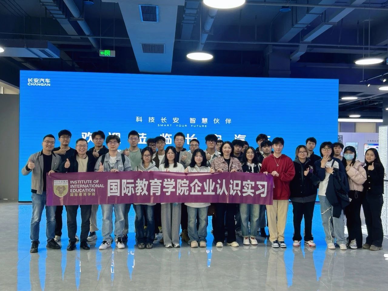 当课堂知识邂逅产业前沿,会激荡出怎样的成长浪花?2025年3月28日,国际教育学院组织合川、綦江双校区学生赴重庆长安科技园开展企业认识实习活动。重庆移通学院副校长张衍学、国际教育学院副院长姜姝、综合办公室主管杨德龙及双校区辅导员带领学生前往长安科技产业园认识实习,通过实地参观、文化讲解、科技展示、沉浸体验等环节,深化产教融合,拓宽学生行业视野。