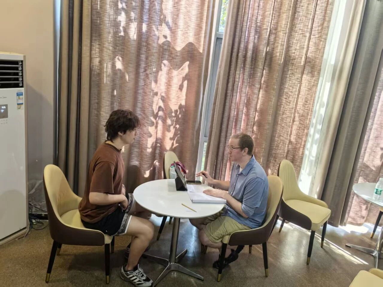 上周五下午的模考活动严格按照雅思官方口语考试流程进行。外教Steven使用了典型的雅思口语考试套话,如“Good Afternoon. Come in and take a seat.”、“Can you tell me your full name, please?”等,全面还原了真实考场氛围。