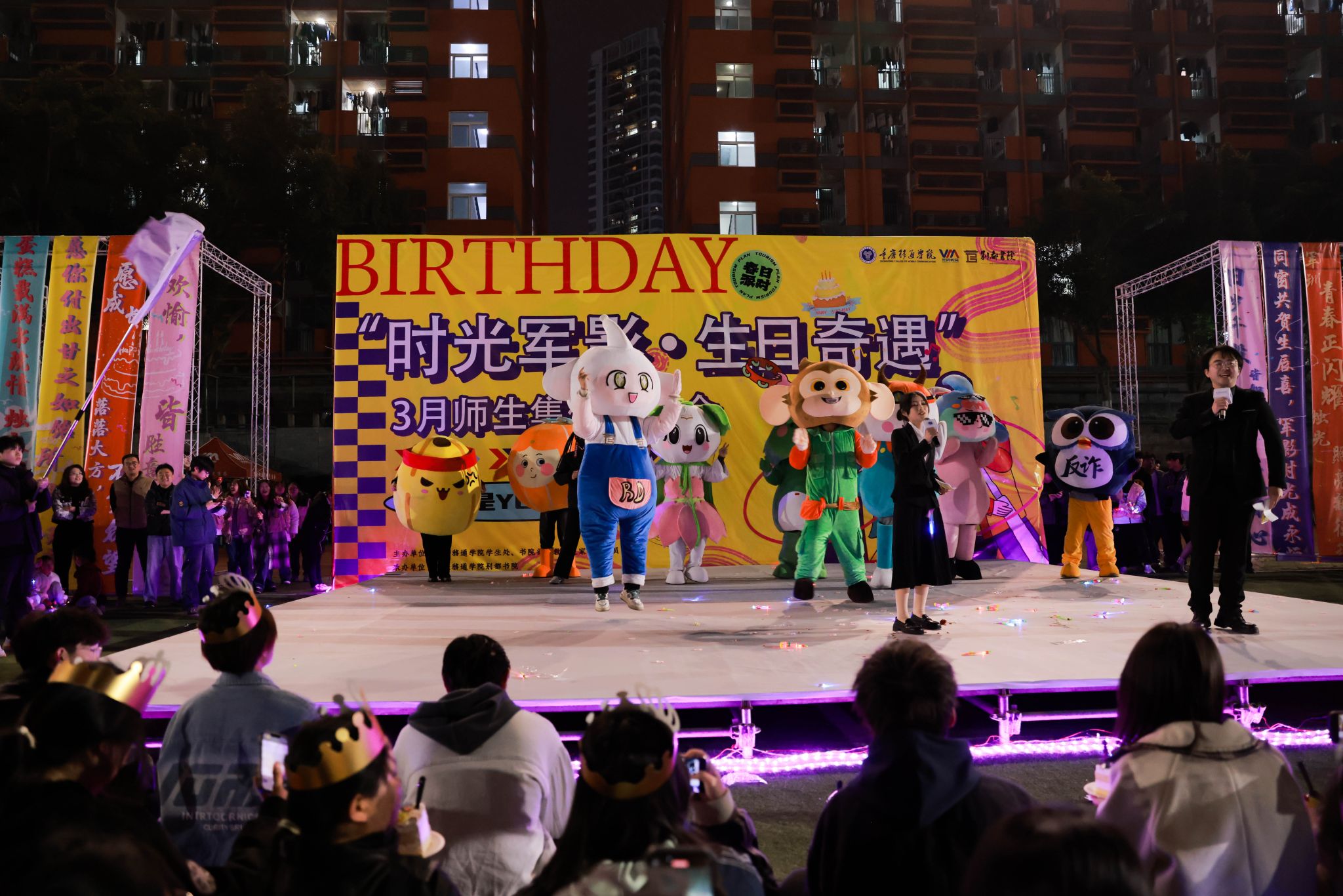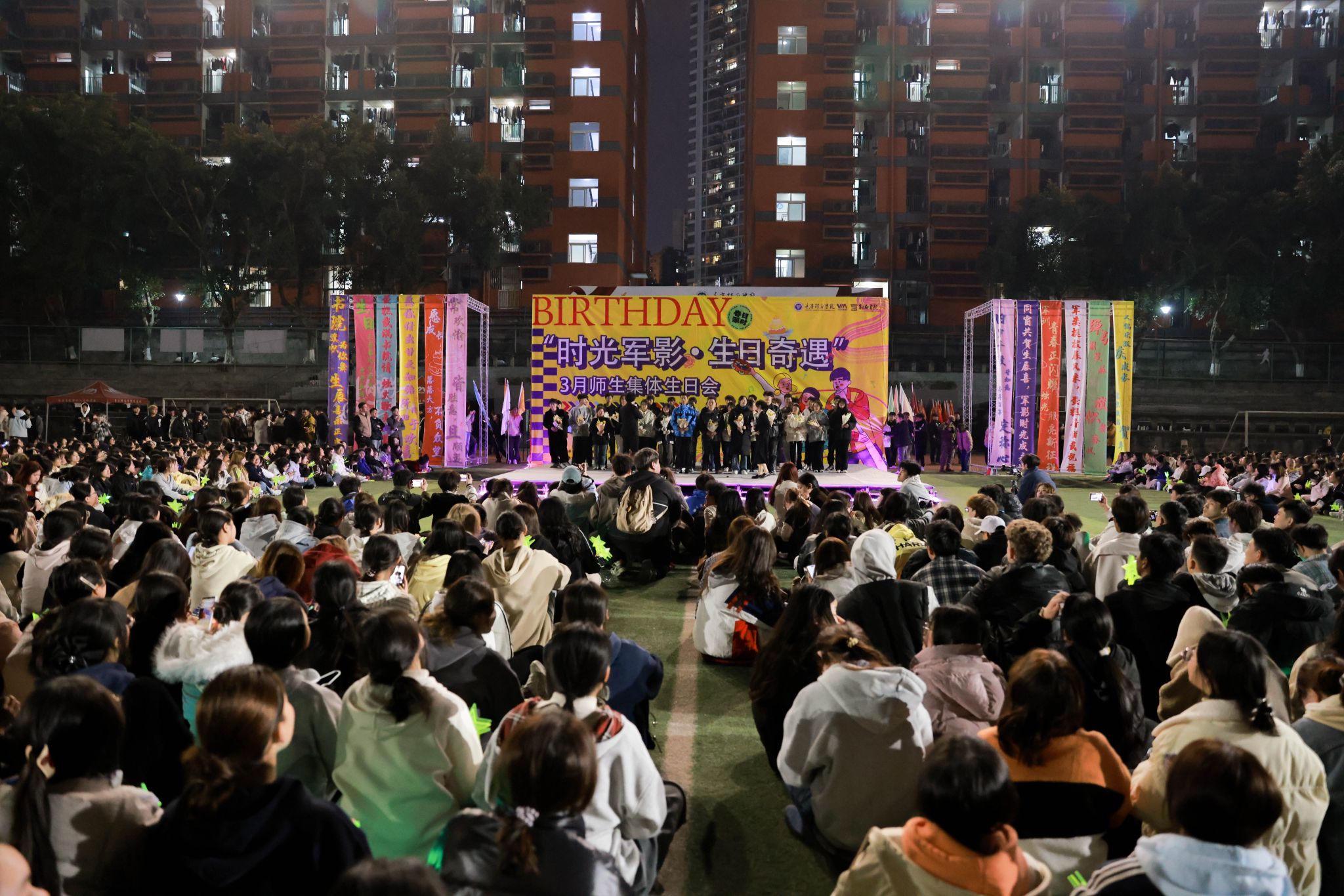 为传递学校关怀、凝聚师生情谊,3月2日晚19:00,南校区足球场迎来了一场别开生面的生日盛宴——“时光军影·生日奇遇”3月师生集体生日会。活动在学生处、校团委、书院部、艺术教育中心、竞技体育中心以及移通工会委员会的梦幻联动下,以创意形式融合青春活力与人文关怀,为3月移通校园的师生寿星打造了专属的温情记忆,活动现场欢声笑语不断,5000余名师生共同度过了一个充满惊喜与感动的夜晚。