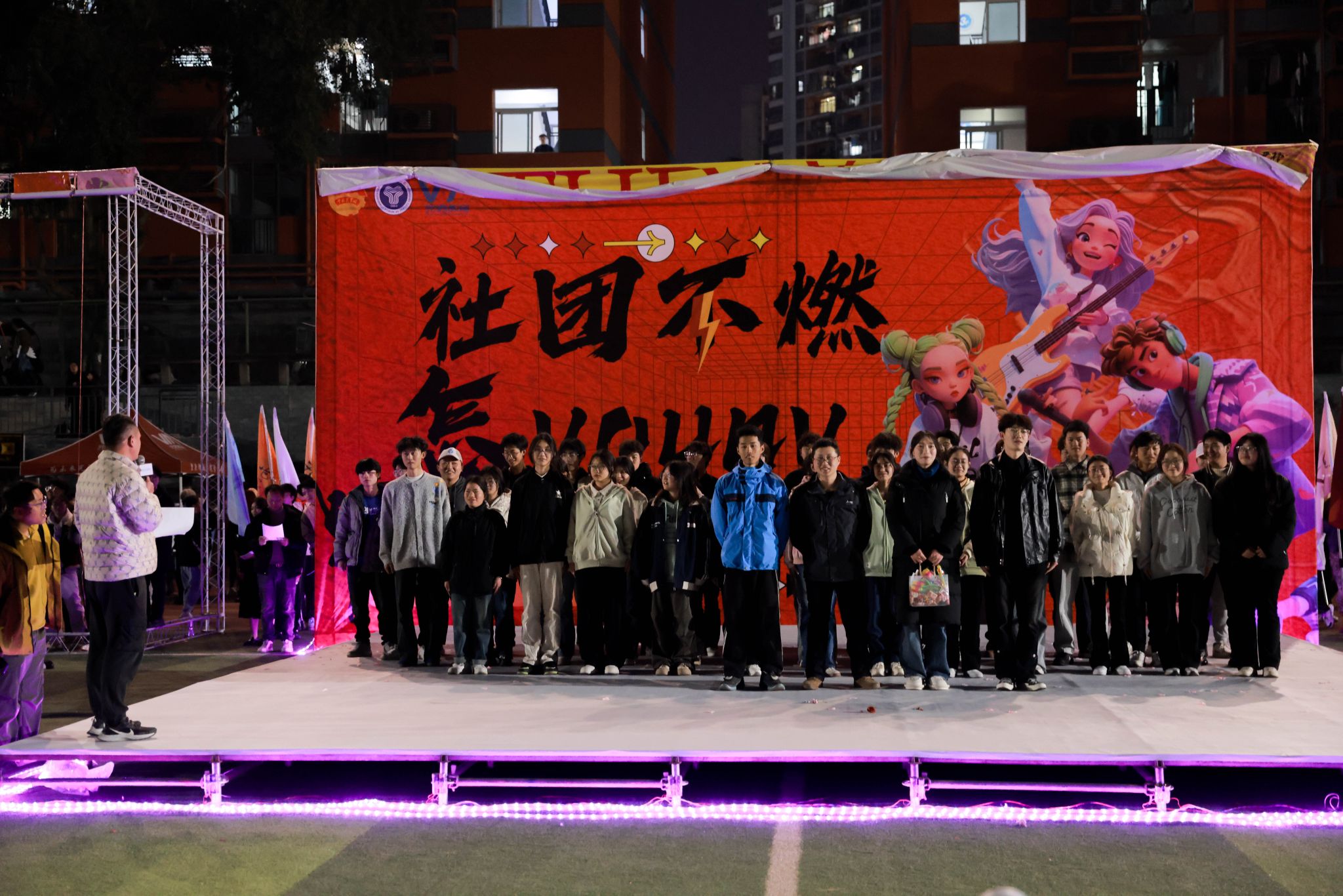 自由表演环节,师生代表们为寿星送出精心编排的歌舞表演,将“硬核祝福”融入动人旋律,每一句歌词,每一个动作都充满了对寿星们的深情厚谊,全场师生自发点亮手机闪光灯,与舞台上的灯光交相辉映,将整个足球场瞬间化作璀璨星河。活动尾声,书院寄语移通学子:“愿所求皆所愿,所行皆坦途”,传递书院“陪伴成长每一步”的育人理念,在这一刻,师生之间的情感纽带得到了进一步的加深与巩固,让在场的每一位师生都感受到了移通大家庭的温暖与关怀。