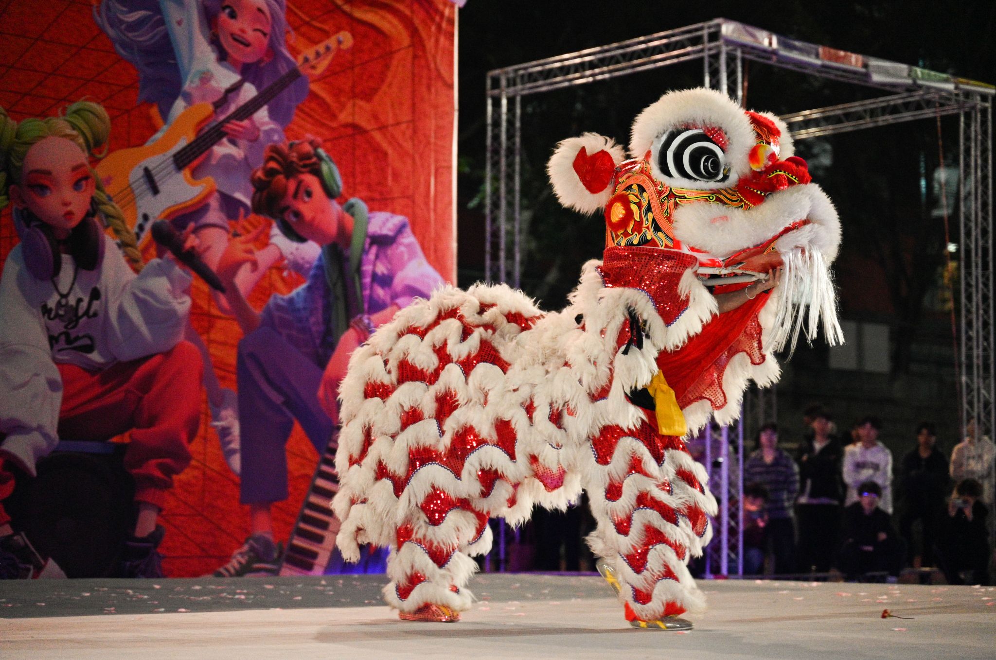 整场活动以“社团风采”+“书院情怀”贯穿始终,精彩纷呈。活动伊始,多个社团轮番上阵,为师生们带来了一场视觉与听觉的盛宴。其中,“非遗舞狮”表演气势磅礴,展现了中华传统文化的魅力;“武术表演”刚劲有力,彰显了青春学子的活力与激情;“嘻哈说唱”与“动感舞蹈”则让现场气氛瞬间燃爆,青春的气息扑面而来;“动漫走秀”更是将二次元文化带入现实,为师生们带来了一场梦幻般的视觉体验,这些社团表演不仅展现了学子们的多才多艺,更激发了现场观众的热情与共鸣。
