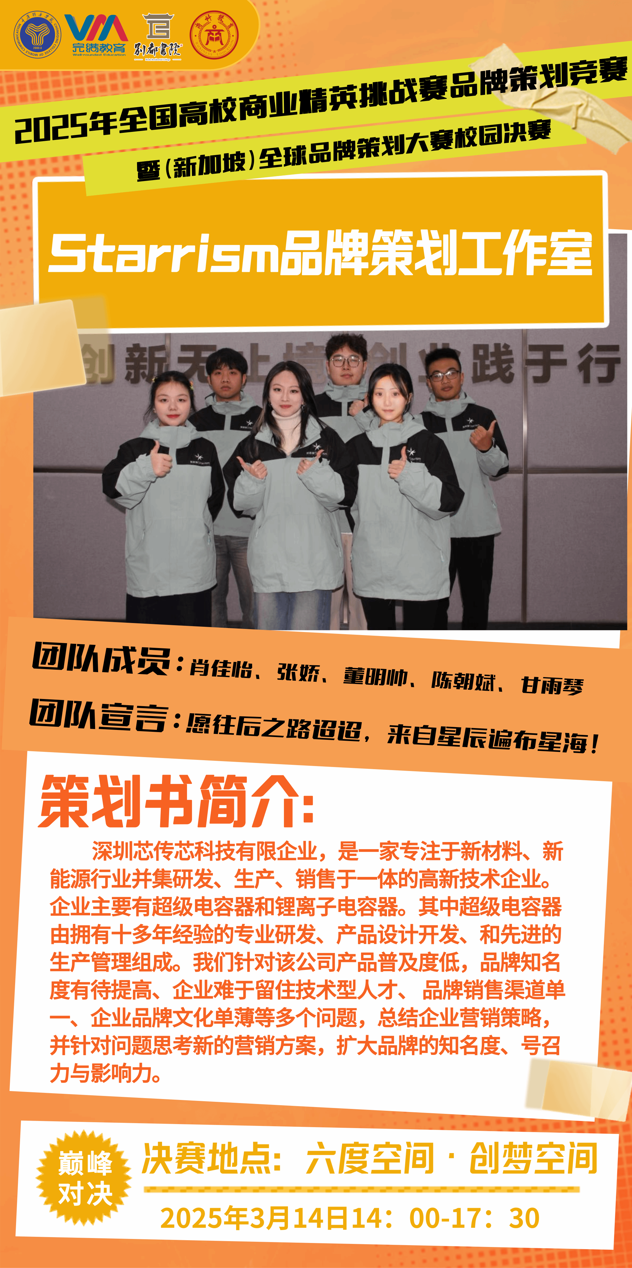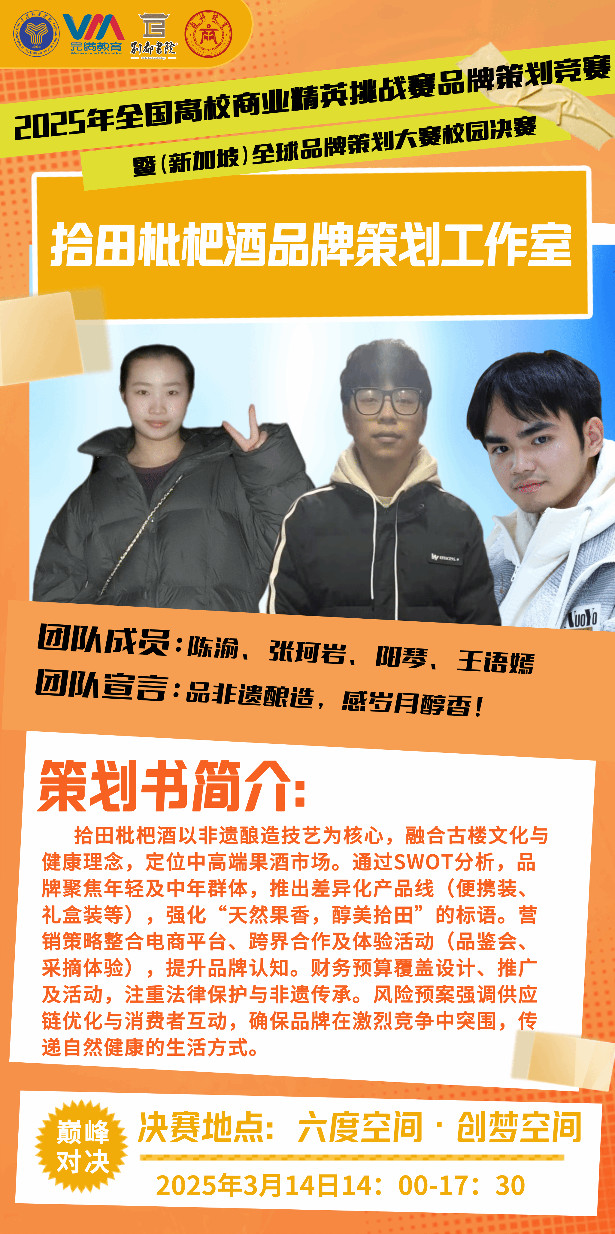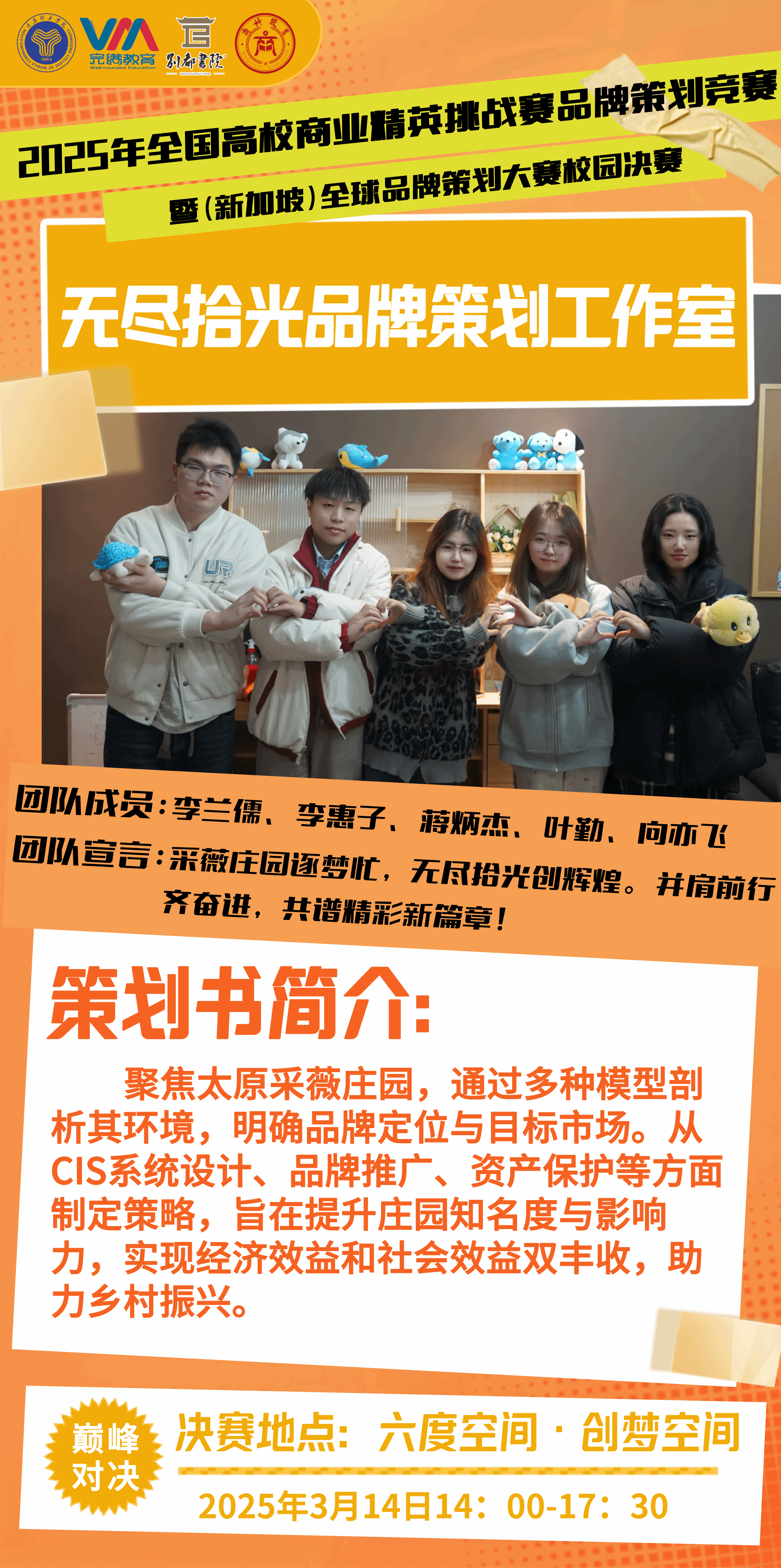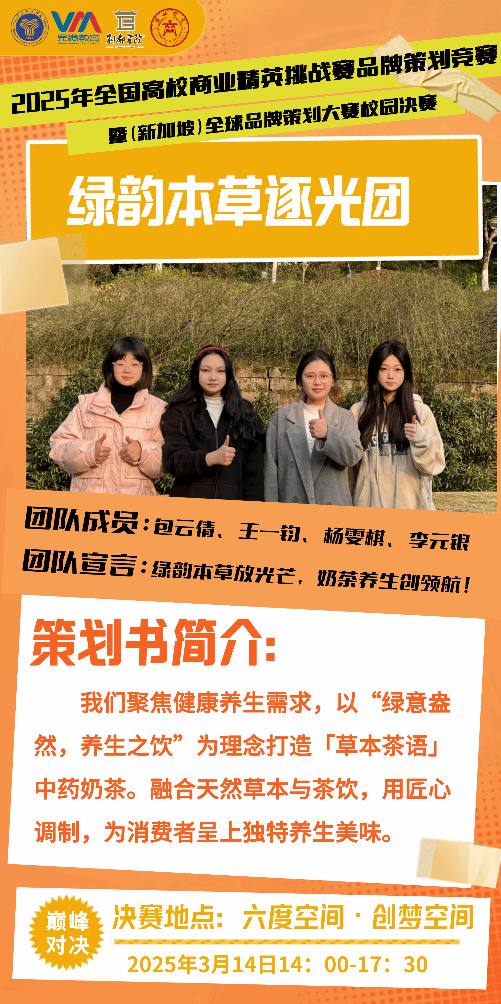 为贯彻落实我校“信息产业商学院”办学定位及“四位一体双院制 +特色课程”人才培养模式,培养数字经济时代高情商经营管理人才,由重庆移通学院别都书院、新商科教学部商业基础课程教研室联合承办的2025年全国高校商业精英挑战赛品牌策划竞赛暨(新加坡)全球品牌策划大赛校内选拔赛决赛将于2025年3月14日14:00在六度空间创梦空间燃爆登场,争夺全国预选赛入场券!