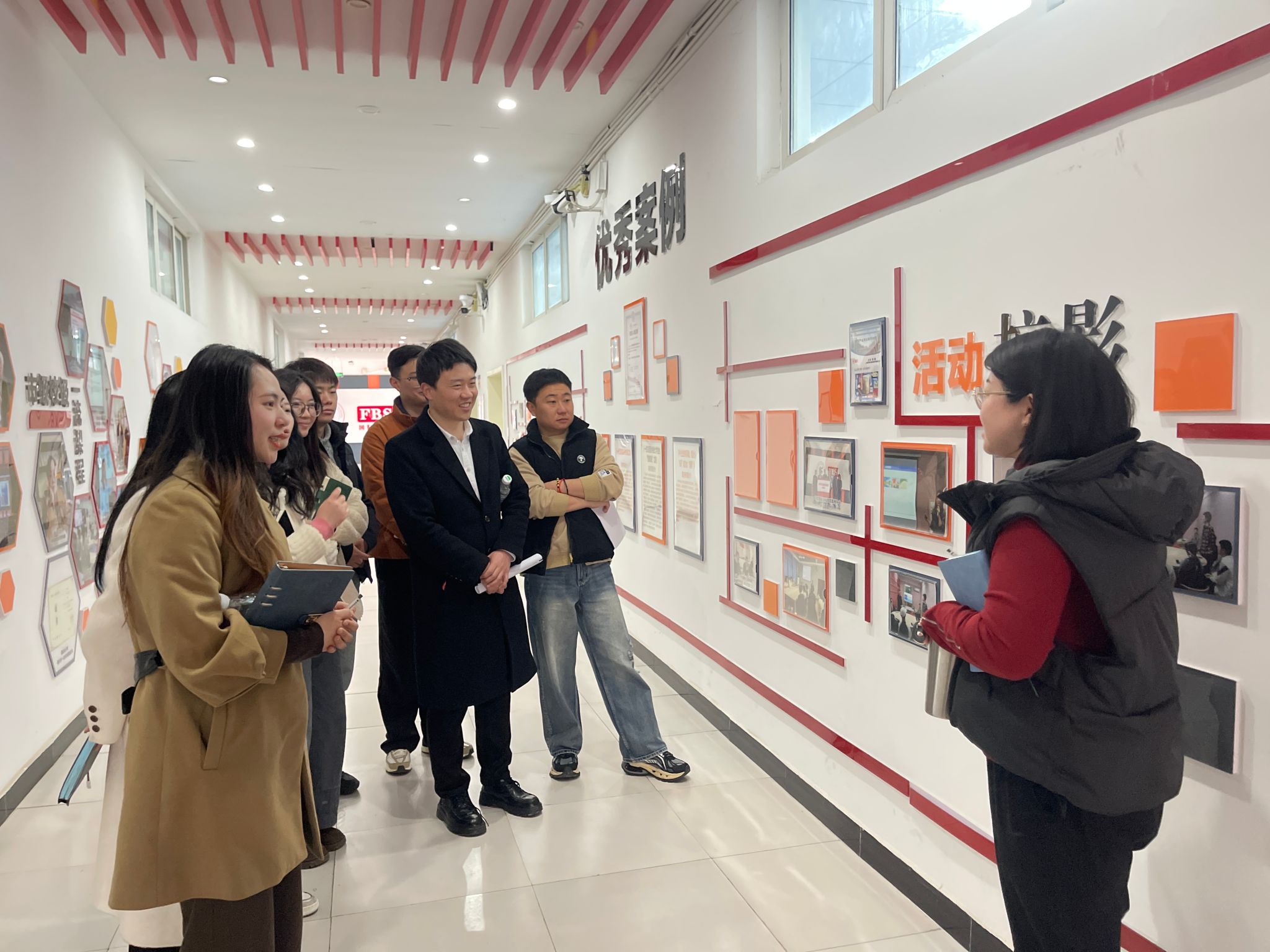 座谈会结束,全体老师在黄新燕老师的带领下一同参观了淬炼商学院的文化专栏及劳动实践基地,黄老师依次为大家介绍了学院党建带团建、学科赛事、学生工作开展情况,大家参观的同时,还针对文化浸润、主题研讨、党建带团建等角度再次进行了互动交流。