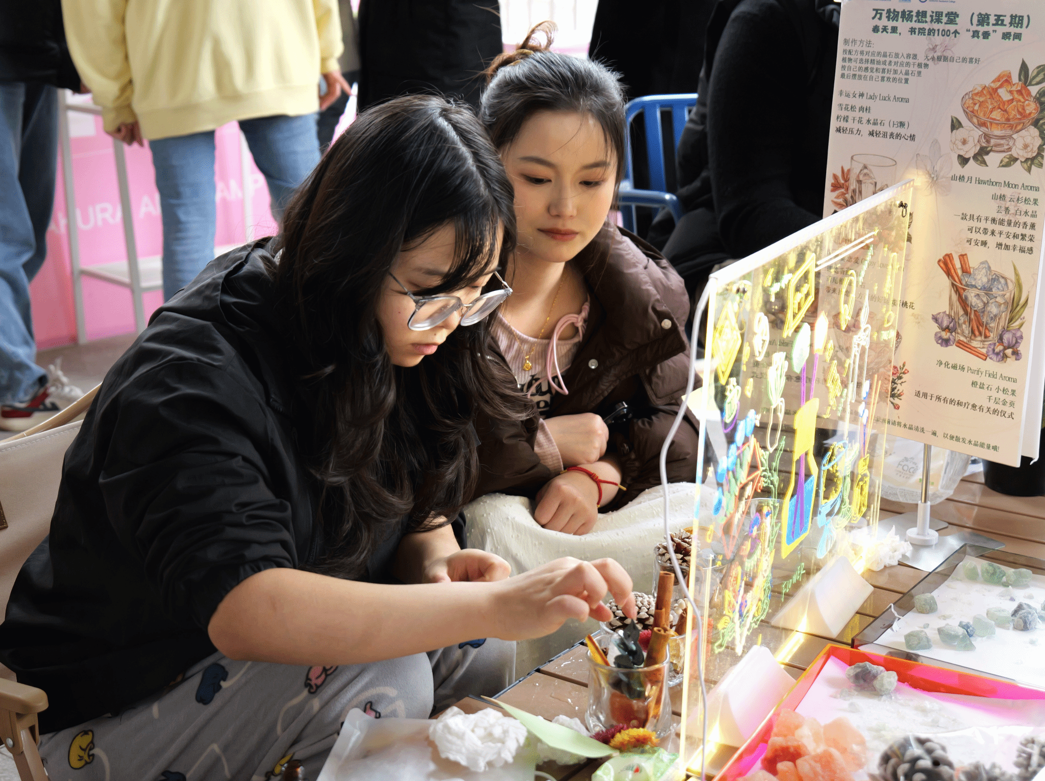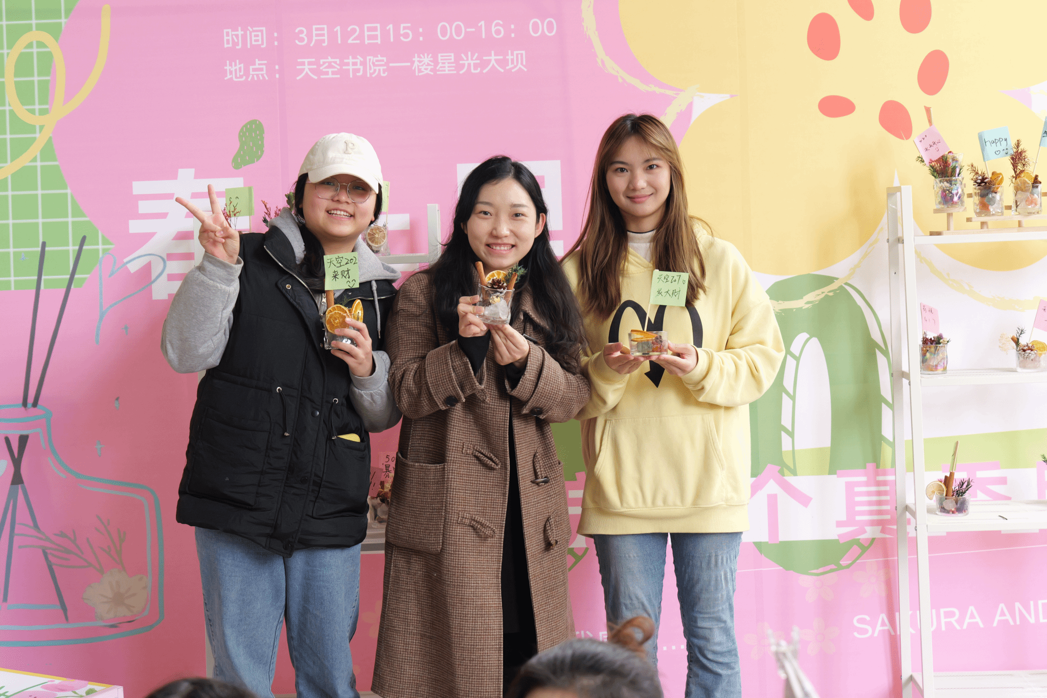 春光无限,万物共存。为营造良好的书院家文化社区氛围,加强全生异科导师与书院学子互动交流,天空书院于3月12日在书院一楼星光广场顺利开展万物畅想课堂第五期“春天里,书院的100个真香瞬间”活动。活动结合书院家文化,以寝室为单位、以宿舍生活为话题、以师生互动为重点开展,通过陪伴式制作专属香薰,用看不见的香气为媒介挖掘大学生关于学业、爱情、同窗情等的真香瞬间,共同解构书院春天、典藏书院记忆,构建书院想象。