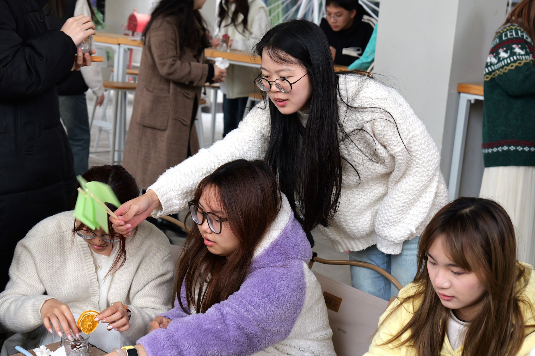 活动现场,吴静、李光珊、胡慧敏、曹敏、殷蓉等10余位异科导师带领本班学生展开有益互动,在制作无火香薰的互动式陪伴中洞察学生所思所想、关心学生生活幸福感和实际问题;晒春光、话家常、做手作,在书院家文化氛围中,激活多维育人效能。