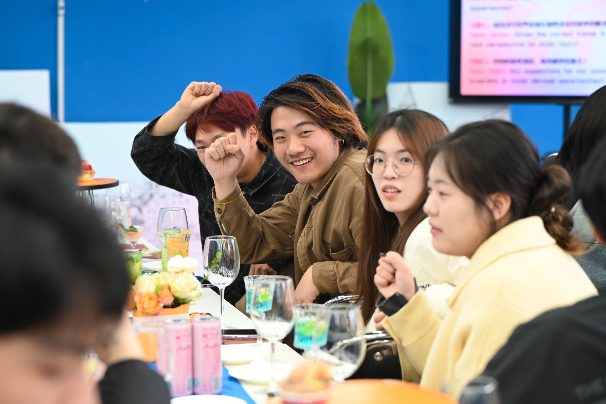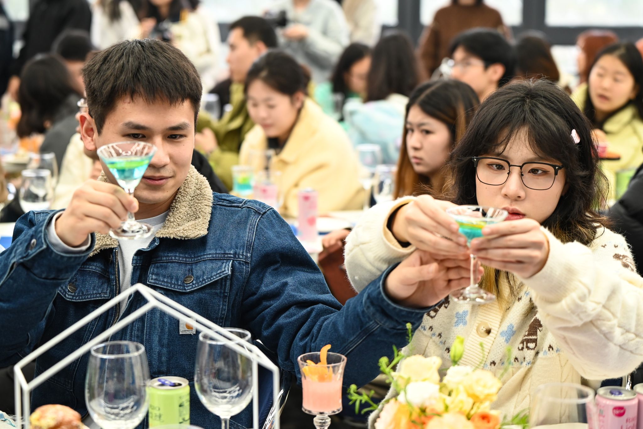 本期校长面对面专题活动以“探索国际化的N种可能”为主题,通过回顾往期海外游学项目经历,烘托七十余名师生的国际交流热潮。来自远景学院、远景书院的朱佳怡同学以她自己在德国留学的奇妙之旅为主题向在场师生分享了她的海外游学经验,感叹重庆移通学院暑期海外游学项目带给她的全新人生体验,并对即将出发前往德国的2025年暑期海外游学学子们献出美好祝福。统战部欧美同学会(留学人员联谊会)会长向觅老师从学校介绍、学习生活分享、课程讨论等方面全英文描绘自身留学香港的亲身感受,提高在场师生的国际交流氛围。来自德国工程学院的德语外教Julio Cesar Cervantes以诙谐幽默的外语开场,多维度呈现出德国的地理人文与科技发展,带给在场师生对德国的美好遐想。调酒师阳世海从鸡尾酒起源、调酒师职业介绍、酒类设计等,和师生共同品鉴西式酒类文化,并通过专业的调酒表演将现场国际化氛围拉到高潮。