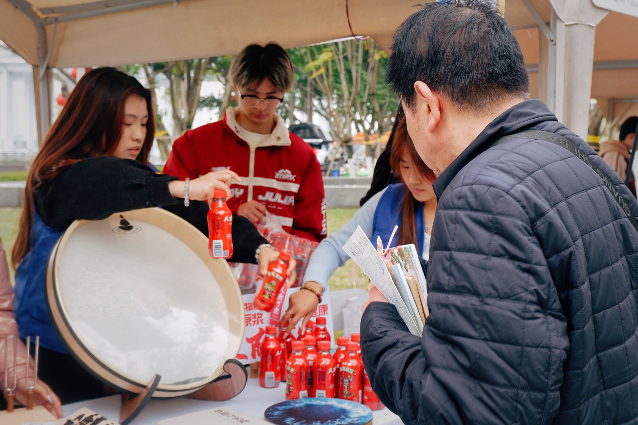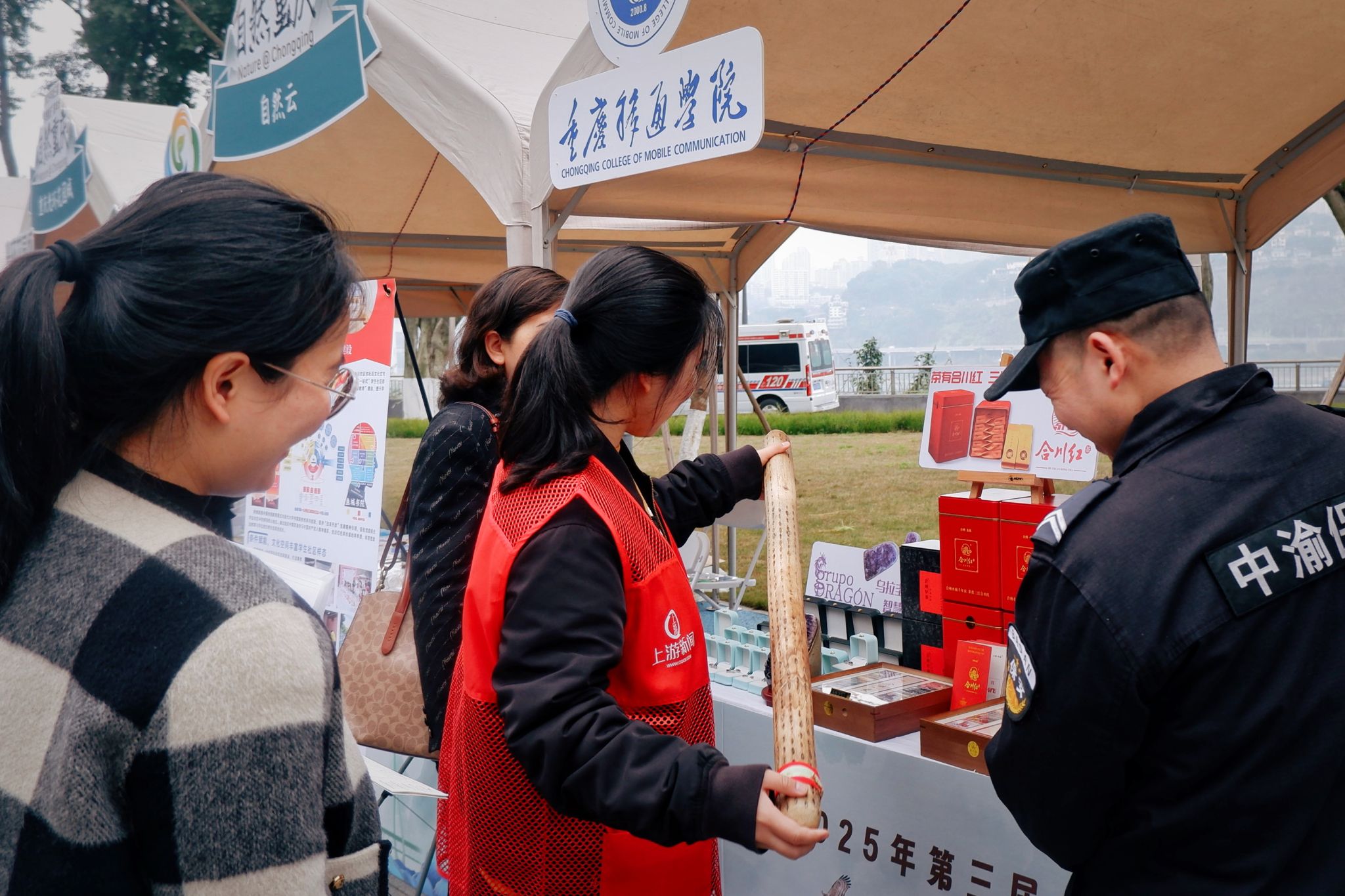 顾盼之间,两江四岸灯火璀璨,山水人城和谐相融。重庆移通学院鱼城书院作为重要参与单位,由鱼城书院综合办公室主任金鑫老师、学生发展导师杨钊熙老师、赵晨老师、姚雨婷老师以及书院学生自治委员会多名同学共同参与,向重庆市民宣传重庆移通学院、国际教育学院、书院部等育人特色和文化内涵,展示合作企业产品如合州水南茶、天府可乐、乌拉圭紫水晶等书院文化周边,并带领市民共打新中式八段锦,展示自然疗愈乐器奥秘,一同开启春季自然养生新模式。