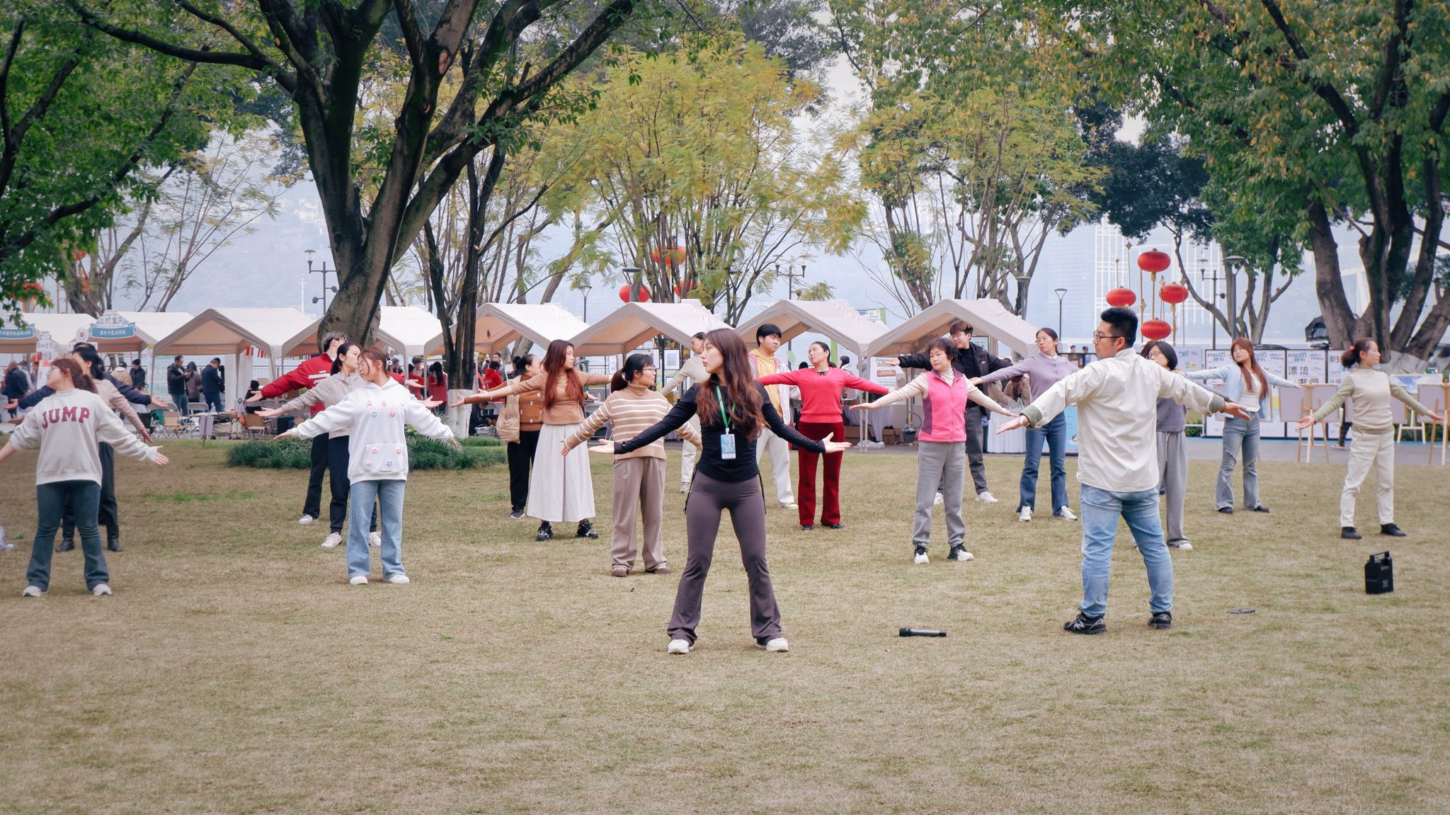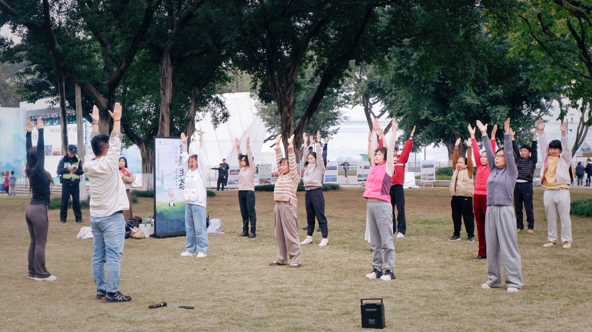 活动期间,鱼城书院积极参与 “自然重庆” 嘉年华的生态教育推广。书院老师现场带领“新中式养生八段锦”体验活动,让重庆市民在自然中锻炼身体、疗养心情、促进血液循环,帮助市民唤醒身体能量。一位参与过两届自然重庆嘉年华的市民感慨:“重庆移通学院鱼城书院的八段锦将自然元素融入传统功法,让运动变得更有诗意。”