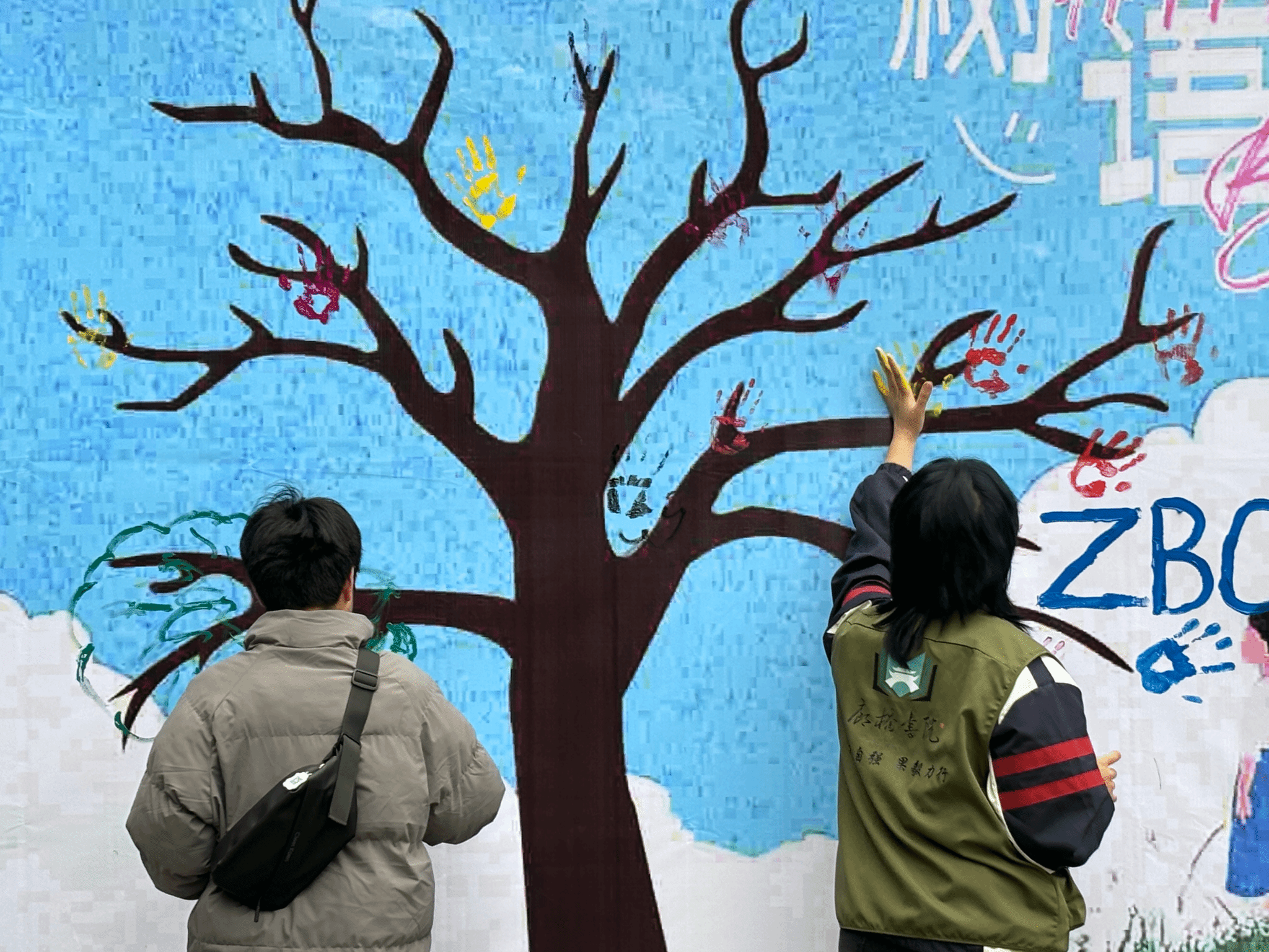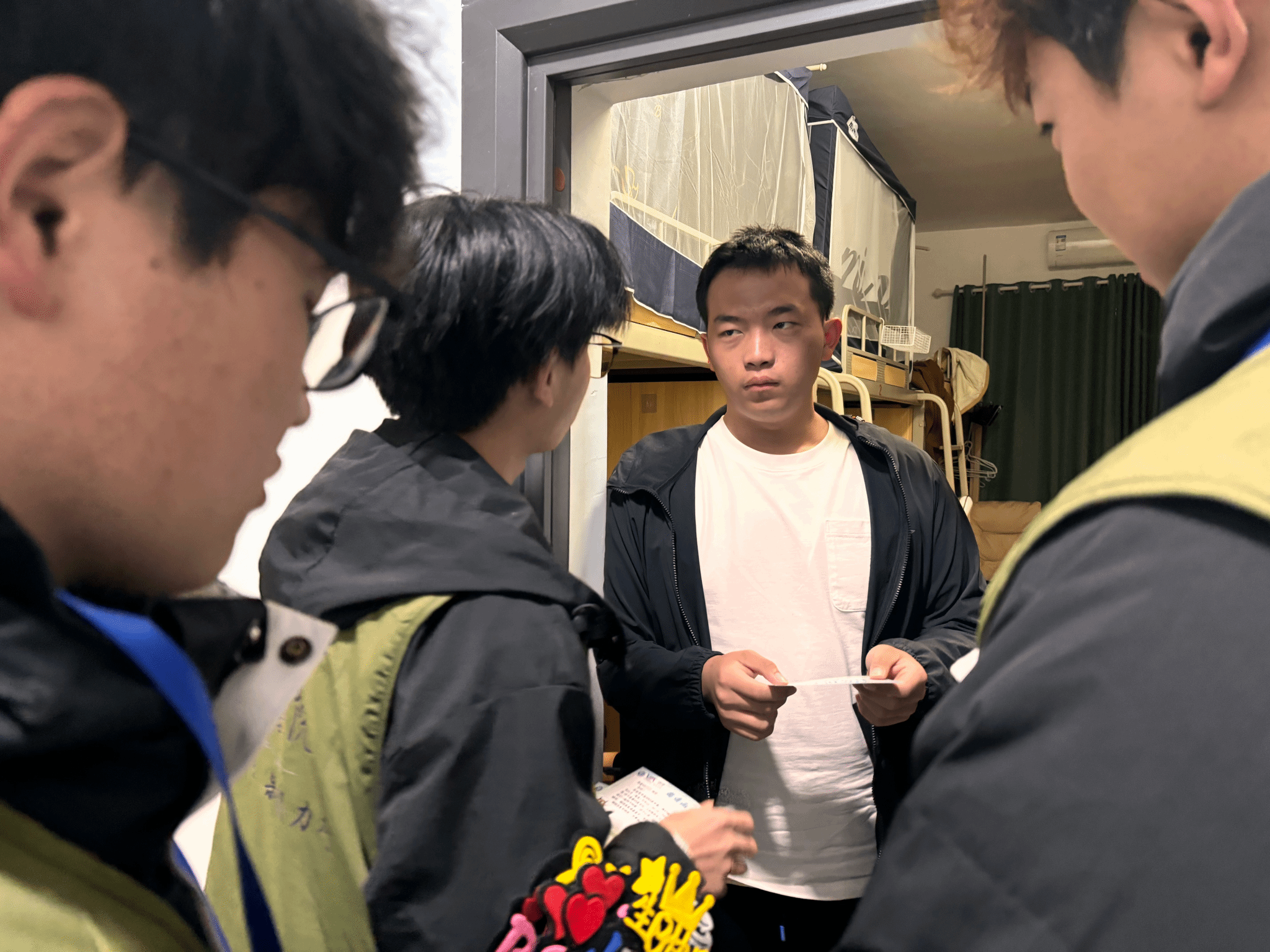 在活动正式举办前夕,同学们穿梭在各个寝室之间,派发为本次生日会精心制作的活动邀请函,诚挚邀请同学们莅临活动现场。活动伊始,寿星们到达活动现场,将自己的指纹印在了木纹板上,通过这一别出心裁的签到方式,共同绘制成一幅象征岁月流转的“年轮”图案。