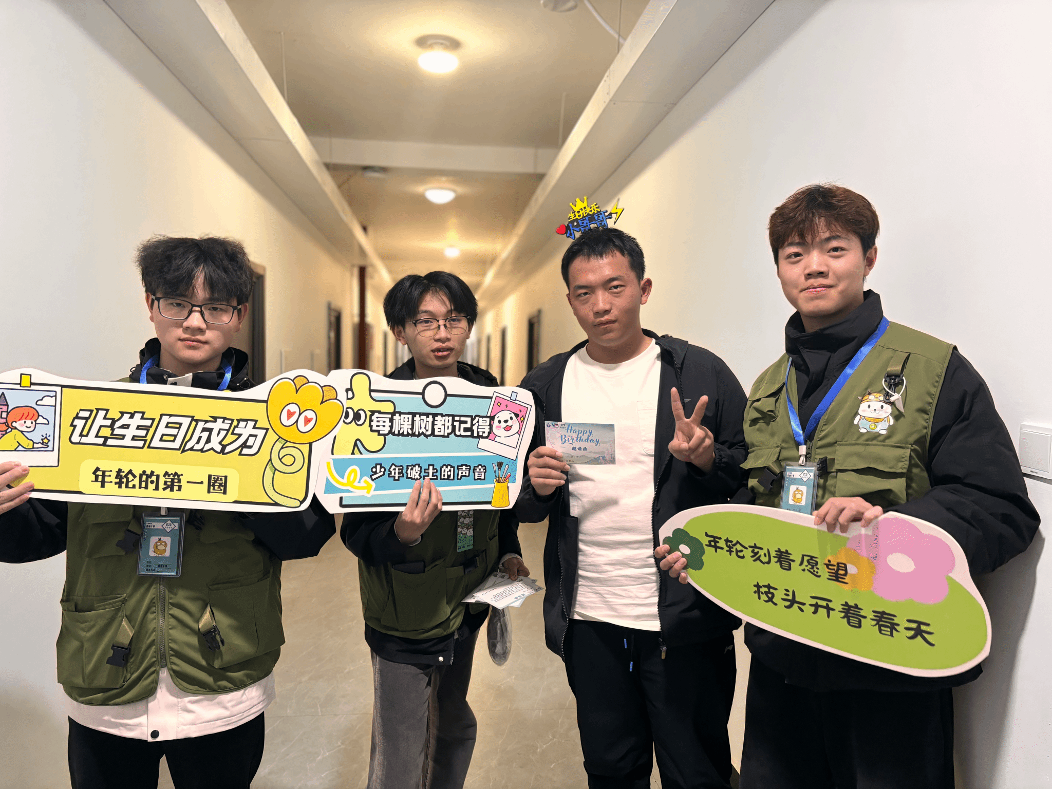 通过谜语匹配组队结果,参与者们领取到了树苗及工具包,在工作人员的演示和指导下学习挖坑、培土、浇水等步骤,并在教学结束后在种植区种下了属于自己的小树苗,郑重地挂上了专属树牌“身份证”,队友们在以后会共同呵护这颗树苗成长。活动的最后,我们为寿星们记录下了这珍贵的一刻,镜头前,同学们的脸上都洋溢着幸福的笑容,尽管时间会不断的前进和流逝,但我们定格的这一刻留下的是永恒而珍贵的记忆。