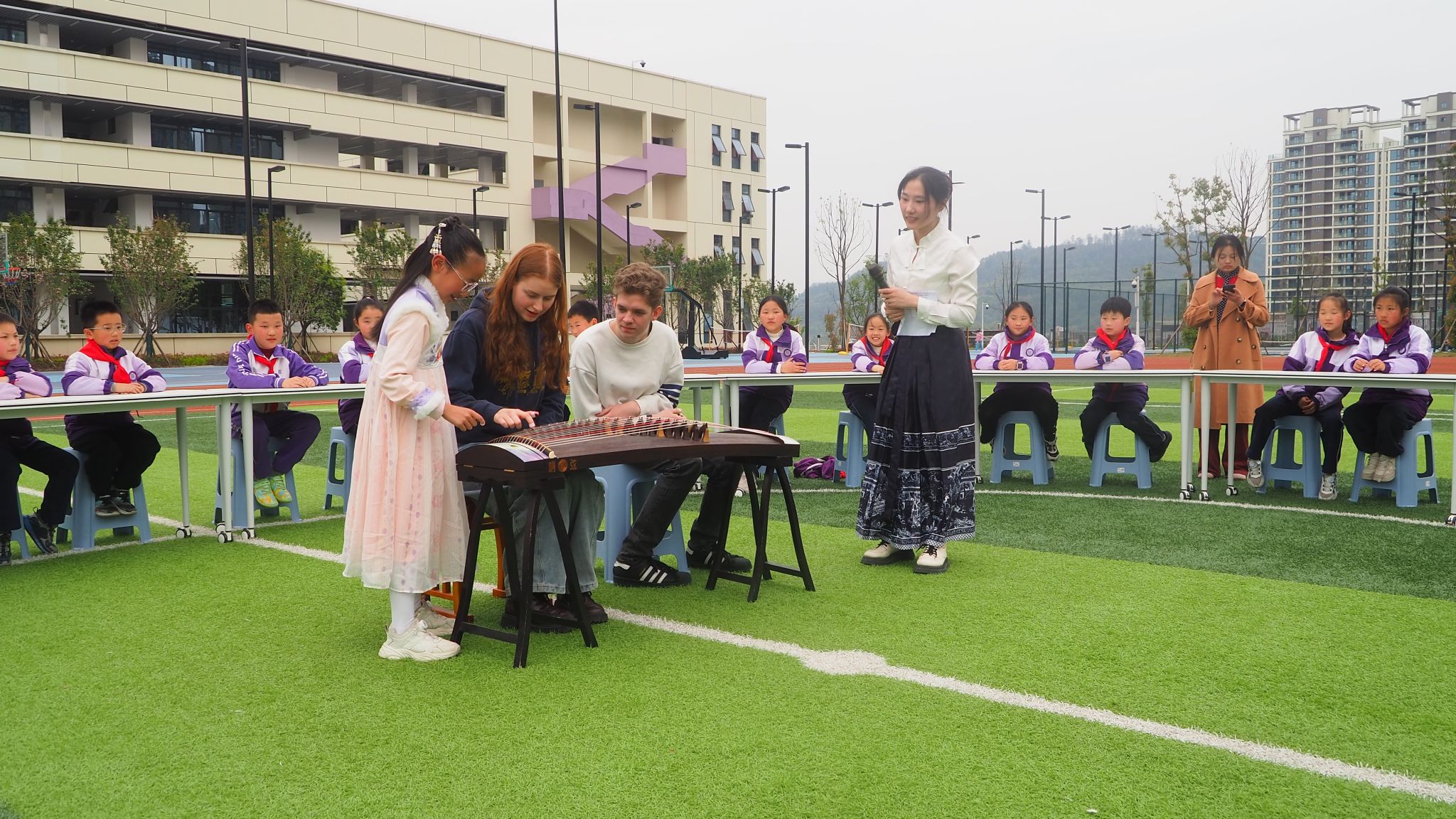 2025年4月3日下午,由重庆移通学院鱼城书院与重庆市合川区久长街小学联合举办的“异国学子汇校园,多元文化润童心”活动在久长街小学花滩校区圆满举行。本次活动以促进中外文化交流为核心,通过多元互动体验,为德国留学生与中国小学生搭建了友谊的桥梁,同时推动了大中小学教育一体化的实践探索。