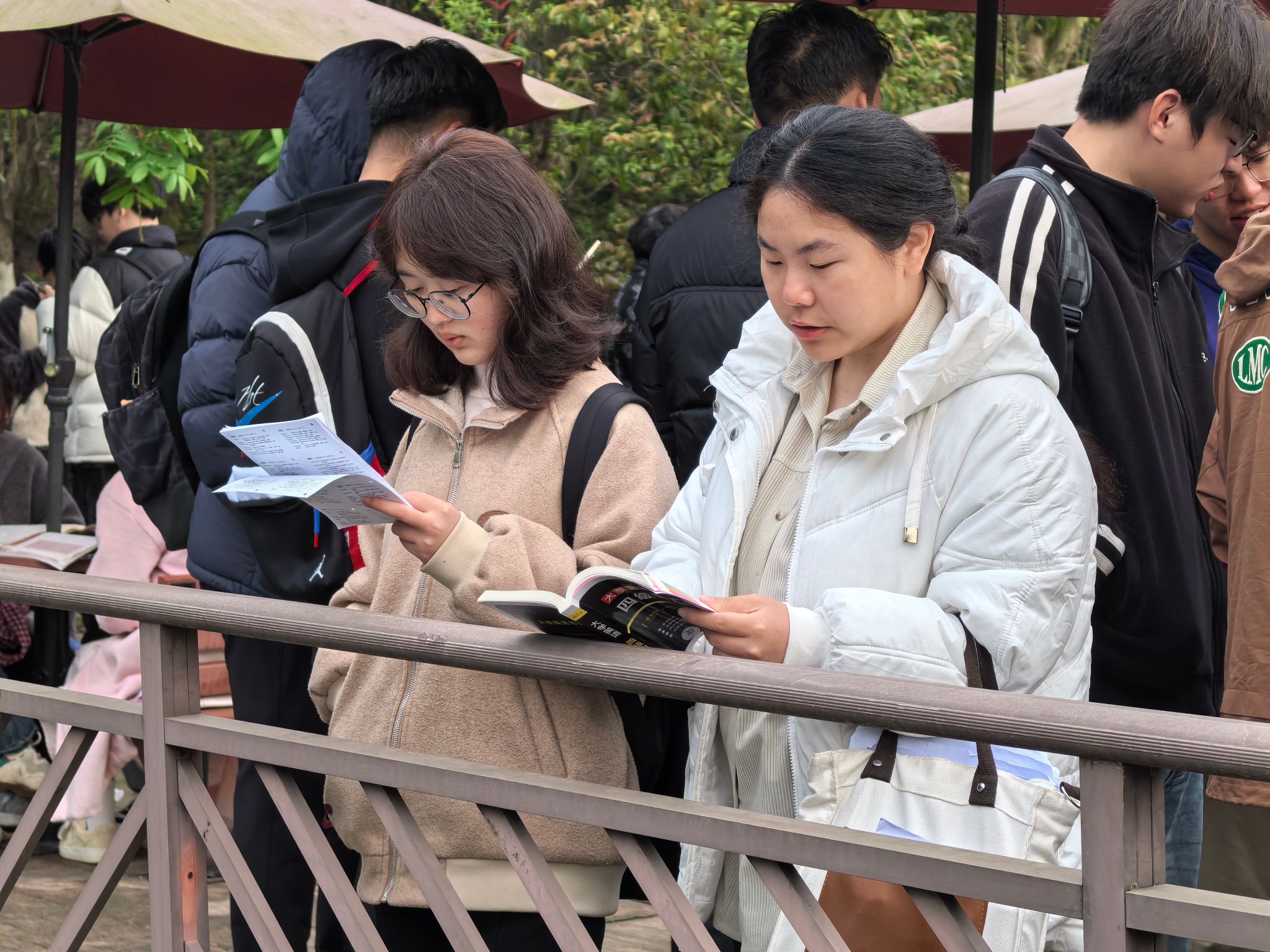 熹微的晨光浸染湖面,湖畔托起一个又一个纯真的梦想。年轻的身影正坐在长椅上,指尖轻轻划过书页,伴随着一声又一声的读书声。不远处,那些准备考试的同学更是全神贯注。他们有的小声背诵着知识点,眉头微皱,仿佛在和知识较着劲;有的则大声朗读,声音清脆响亮,一句句知识随着晨风飘散在湖面。他们用自己的方式,努力追求着知识,不放过任何一个提升自己的机会 。