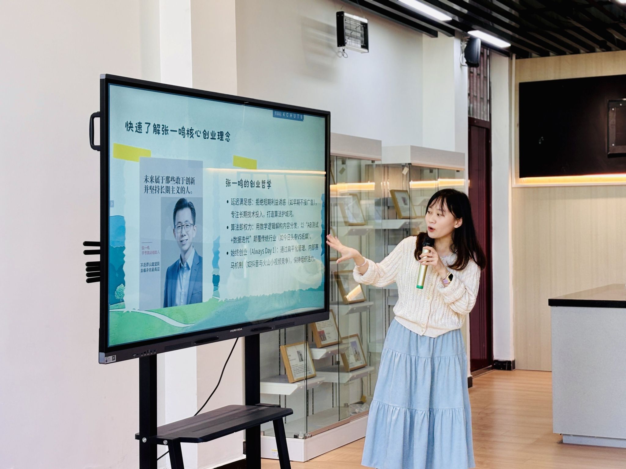 “每天刷头条、玩抖音的你,对张一鸣的创业史了解多少?他是先后入选《福布斯》中国30位30岁以下的创业者和《财富》中国40位40岁以下的商业精英之一,是中国国内互联网行业最受关注的青年领袖之一。4月18日下午15:00在荷悦书院109,开展了一场以“当‘字节基因’碰撞青春算法”为主题的大咖传记阅读分享会,由全生异科导师外国语学院陶依文老师带领大家一起走进《张一鸣让字节跳动的创业哲学》,通过师生共读、跨界对话、趣味挑战与创意手作的环节,带领学生共同探寻张一鸣“极致理性与长期主义”背后的成长逻辑。