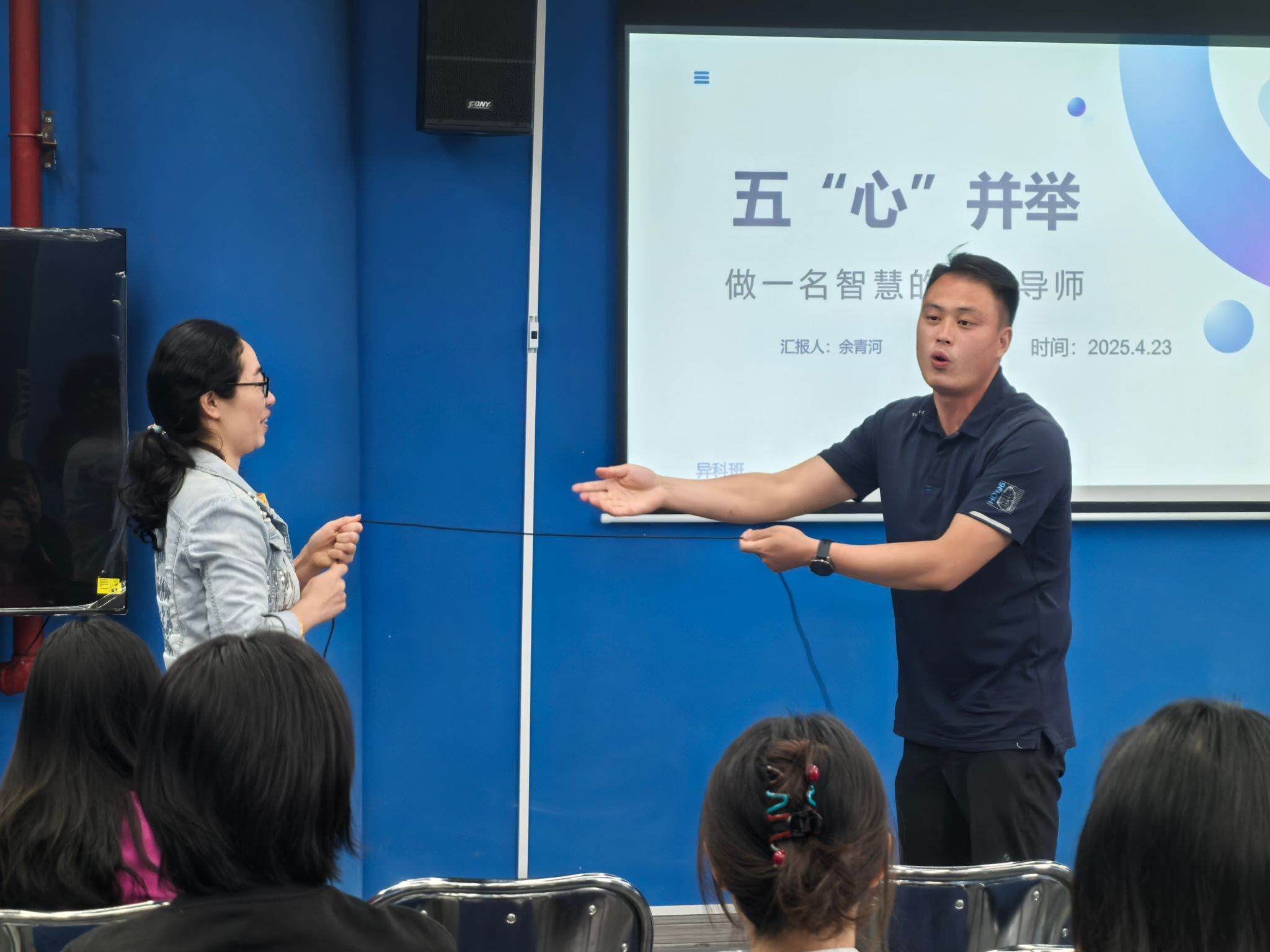外国语学院、行者公园书院群异科导师代表余青河老师以《五"心"并举,做一名智慧的异科导师》出发,用生动故事分享育人经验。余老师表示"五心"育人法,以"爱心、细心、责任心、宽容心、公平心"全方位关爱学生成长。通过亦师亦友的师生情、精准帮扶方案形成一种教学相长机制,余老师的育人工作既有温度又有深度。"每个学生都是待书写的故事。"余老师表示,将继续以"五心"为笔,助力学生在异科教育中书写更精彩的故事。